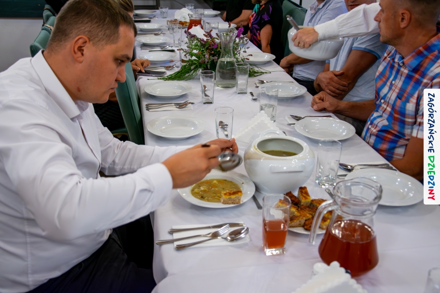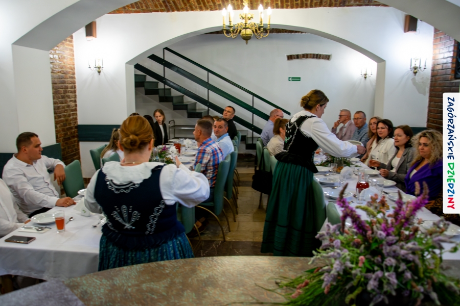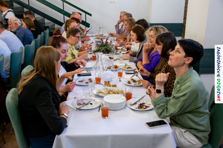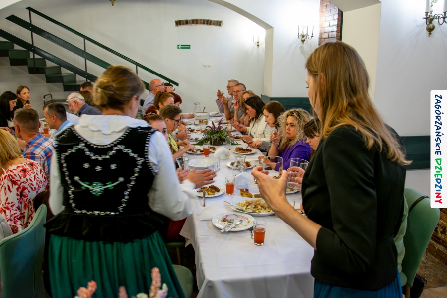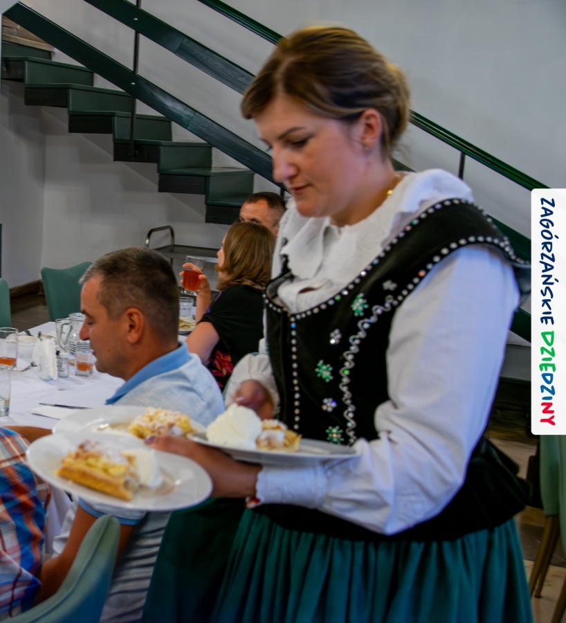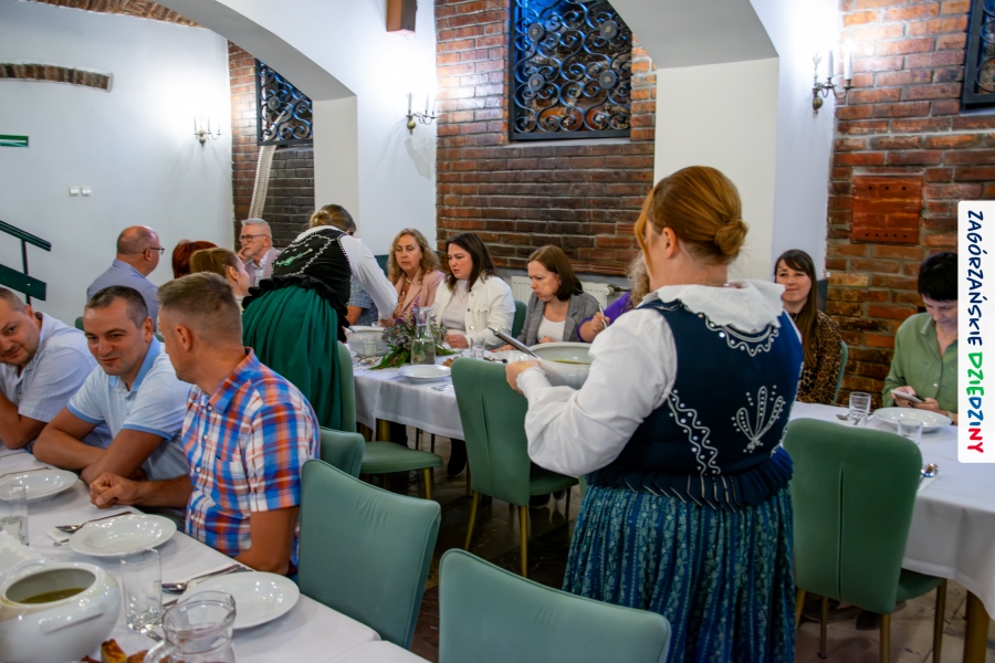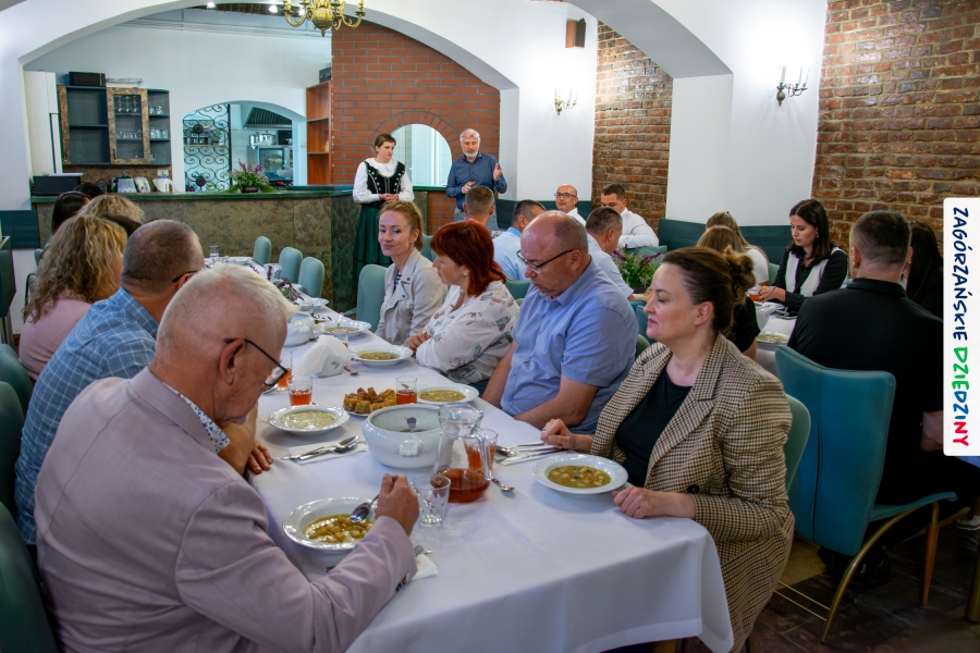 I tym razem goście z zagranicy rozkoszowali się smakiem zagórzańskiej zupy z korpieli na mleku i pierogów z suszonymi śliwkami (obie potrawy znajdują się na w/w zaszczytnej Liście). Danie główne stanowiła rodzima baranina, podana na pieczonych warzywach, w towarzystwie grillowanego serka i sosu z borówek leśnych. A na deser? – placek z jabłkami z gałką kraftowych lodów od Lodów i Spółki oraz tradycyjny sernik. Pragnienie wszyscy goście mogli ugasić popijając kompot ze świeżych owoców sezonowych, zebranych w łętowskich sadach oraz wodą z dodatkiem naturalnego soku z kwiatów czarnego bzu. Aromaty z kuchni mieszały się z tymi ziołowymi unoszącymi się z bukietów zdobiących stoły... Były opowieści o kuchni Zagórzan, o marce lokalnej, o rolnictwie i dziedzictwie miejsca, gdzie Beskid Wyspowy wita się z Gorcami. Wszyscy rozkoszowali się tym, czego przyszło im doświadczyć podczas tego spotkania, jedynie tłumacz musiał sobie język łamać, wszak translacja gwarowych, regionalnych słów do najłatwiejszych nie należy…