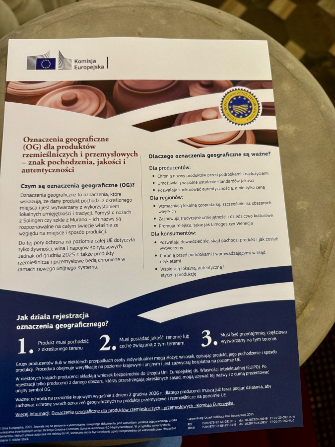 Dowiedzieliśmy się również, że od grudnia 2025 r. ochroną nowego unijnego systemu objęte zostaną również produkty rzemieślnicze i przemysłowe w ramach znaku pochodzenia, jakości i autentyczności. Do tej pory ochrona na poziomie całej UE – oznaczenia geograficzne (OG) – dotyczyła tylko żywności, wina i napojów spirytusowych.
