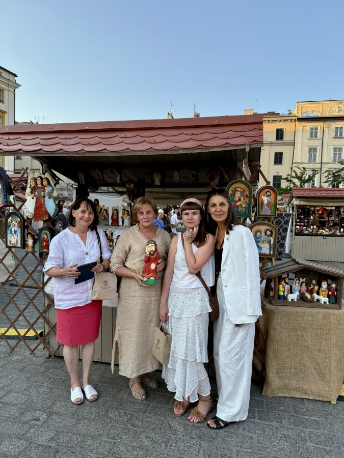 Spotkanie zorganizowane w Pałacu Potockich stało się również okazją do dyskusji kuluarowych oraz wizyt na stoiskach twórców 49. Międzynarodowych Targów Sztuki Ludowej w Krakowie. Swój piękny sklep z ludowym rękodziełem zaprezentowała właścicielka niesamowitego przybytku: Sukiennice s.c. Rękodzieło Sztuka Ludowa; na dłużej przystanęliśmy przy stoisku Bogumiły Leśniak, jednej z panelistek konferencji, gdzie zachwyciliśmy się rzeźbą w drewnie i malarstwem na szkle.