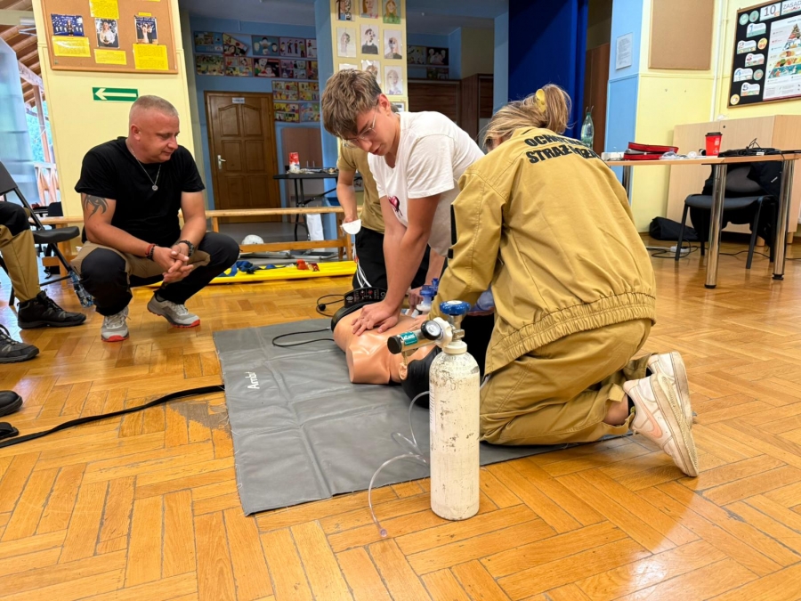 w czasie praktycznych ćwiczeń pod okiem doświadczonych ratowników medycznych.