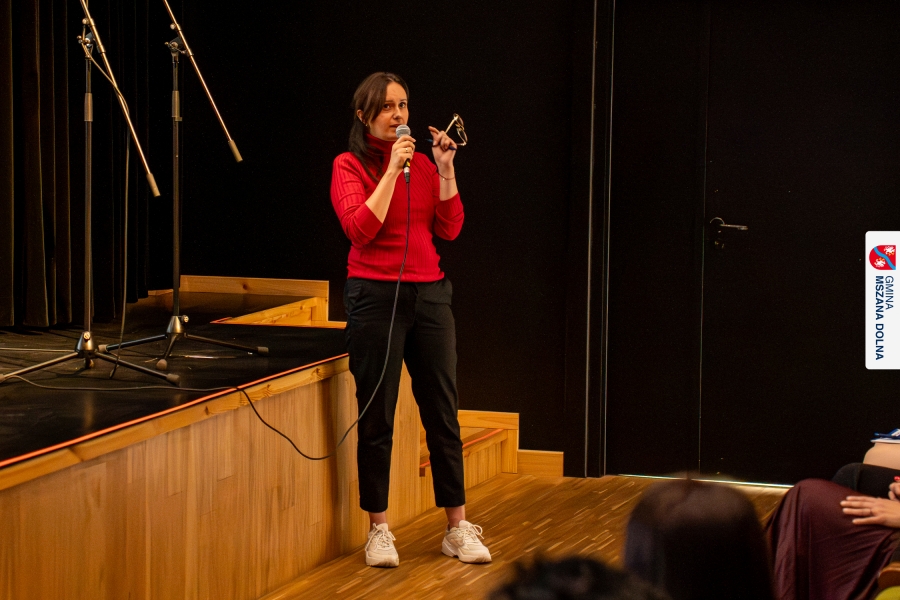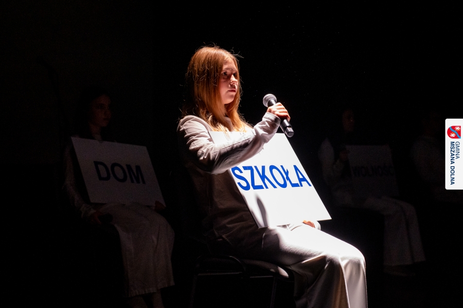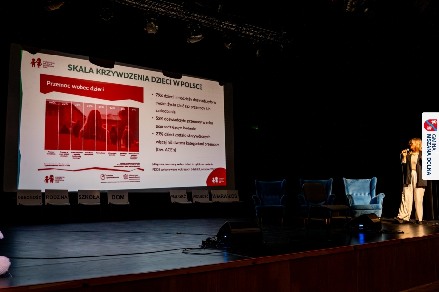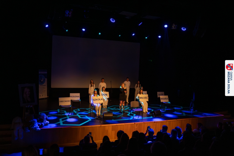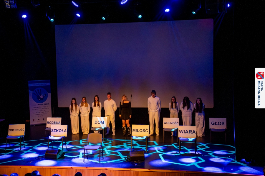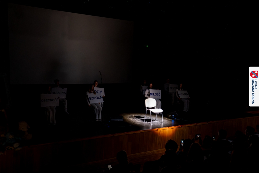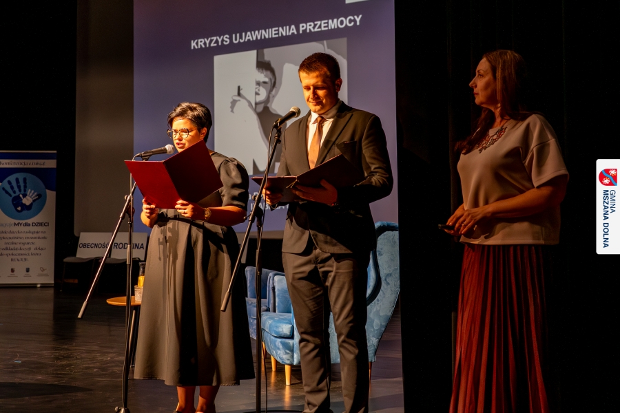 Spotkanie rozpoczęła młodzieżowa grupa „Bez Maski”, przygotowana pod opieką Doroty Gil, logopedy i nauczycielki z Zespołu Placówek Oświatowych w Podobinie. Spektakl słowno-muzyczny stworzony specjalnie na tę okazję poruszył publiczność. W ciszy i skupieniu uczestnicy słuchali młodych artystów, którzy odważnie pokazywali, czym jest dla nich bezpieczeństwo, jak wygląda świat, w którym dziecko doświadcza przemocy, i jak bardzo potrzebują obecności i uważności dorosłych.