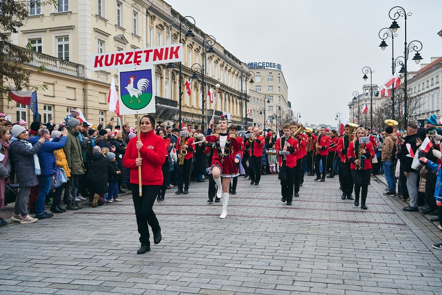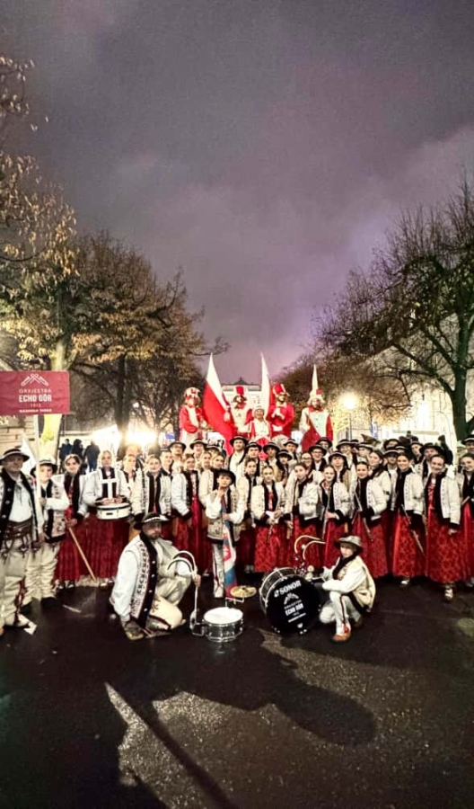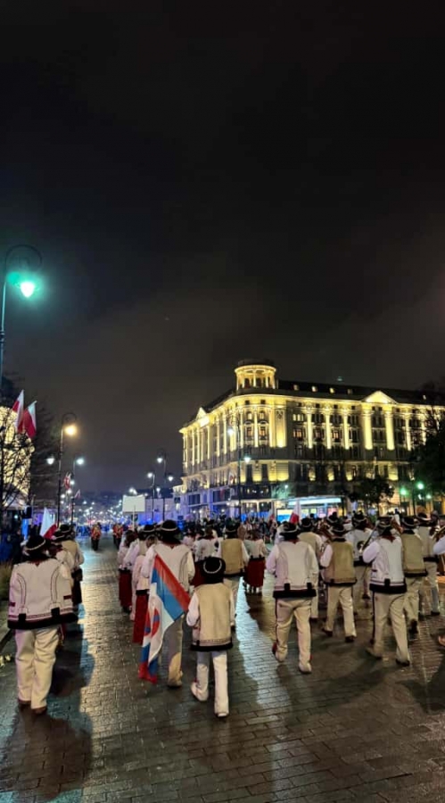 11 listopada o 12:00 zaśpiewaliśmy „Mazurka Dąbrowskiego” w Muzeum Historii Polski wraz z zebranymi. Zaprezentowaliśmy także nasz program artystyczny oraz wzięliśmy udział w paradzie zespołów. Stamtąd udaliśmy się na Krakowskie Przedmieście, gdzie graliśmy utwory patriotyczne i rozrywkowe.