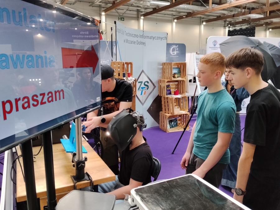 Dużym zainteresowaniem cieszyła się także promocja branży spawalniczej. Na stoisku ZSTI można było zobaczyć nowoczesne symulatory spawalnicze, które pozwalały odwiedzającym spróbować swoich sił w tej specjalności. Dzięki temu młodzi uczestnicy mogli przekonać się, jak wygląda praca spawacza i jakie kompetencje są potrzebne w tym zawodzie.