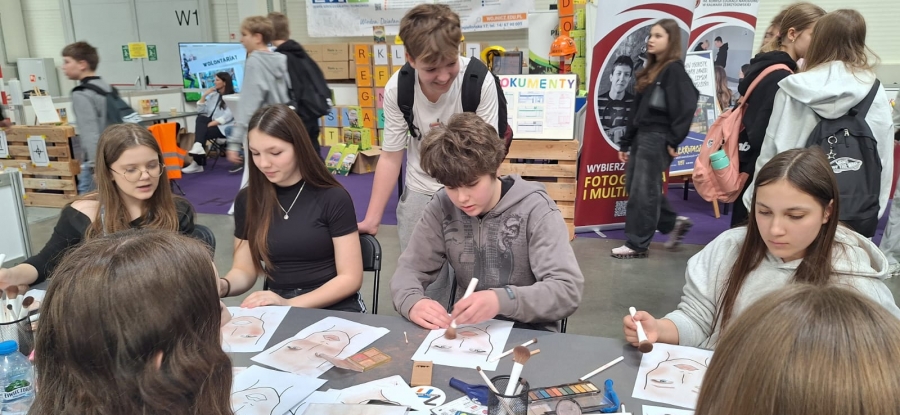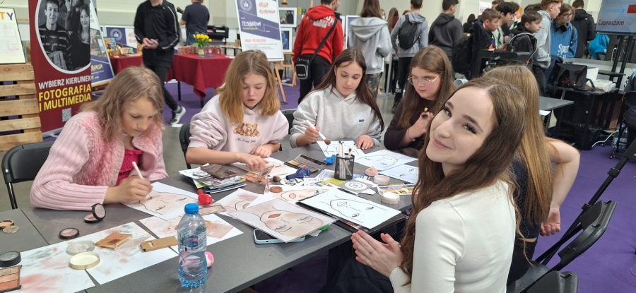 Wśród wystawców nie zabrakło również Zespołu Szkół Techniczno-Informatycznych, który zaprezentował swoją ofertę edukacyjną na specjalnie przygotowanym stoisku. Uczniowie i nauczyciele szkoły przedstawili kierunki kształcenia oraz praktyczne umiejętności zdobywane podczas nauki. Szczególną uwagę odwiedzających przyciągała branża reklamowa, gdzie uczennice zaprezentowały elementy wizażu i kreowania wizerunku, pokazując jak w praktyce wygląda praca w zawodzie technika reklamy oraz stylisty.