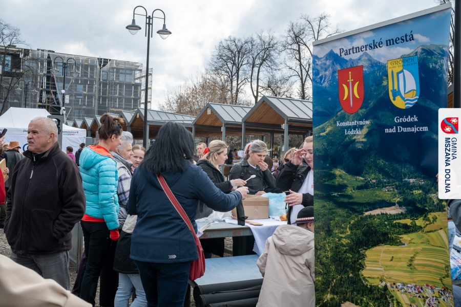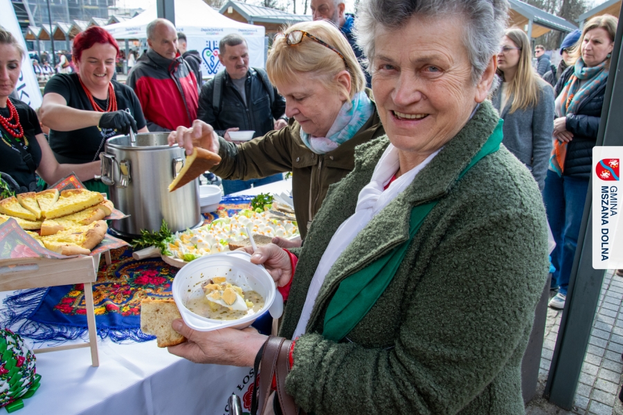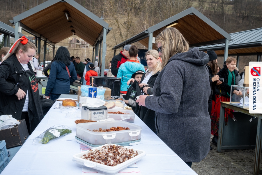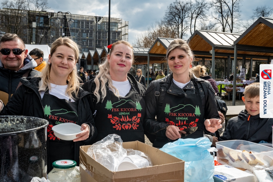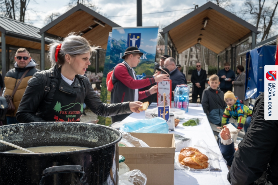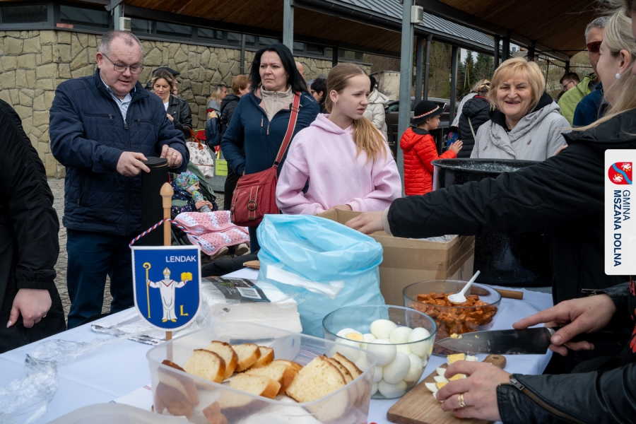 Kulminacją weekendu była "Bitwa na sodrę", zorganizowana podczas V Jarmarku Wielkanocnego. Wydarzenie stało się przestrzenią do prezentacji tradycji kulinarnych oraz integracji polsko‑słowackiej. Nasi partnerzy z Obec Lendak zaprezentowali swoją tradycyjną wielkanocną „polevkę”, zdobywając wyróżnienie w konkursie "Scodro łyske". „Złota chochla” trafiła do Łostowianek, srebrną odebrał główny kucharz Klubu Senior +, a brązowe ex aequo Śwarne Babki z Łętowego i Gosposie z Mszany Górnej. W wydarzeniu uczestniczył również Starosta Lendaku, Miro Koščák, reprezentując partnerski samorząd wraz z rodziną i pracownikiem urzędu.