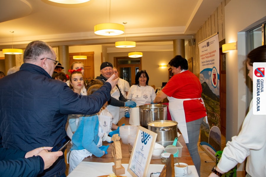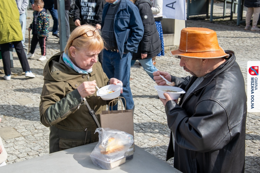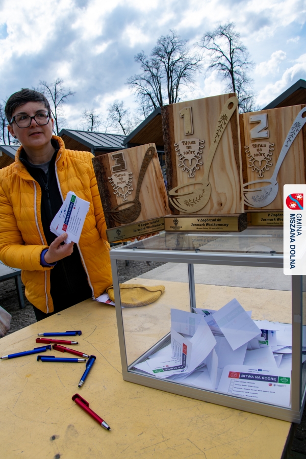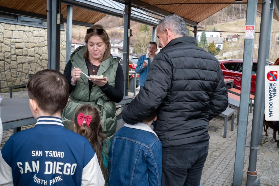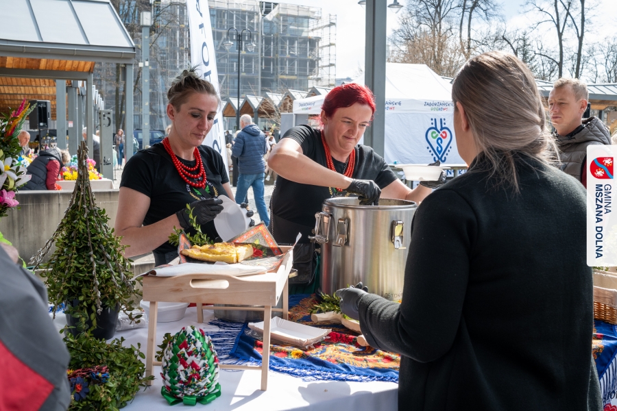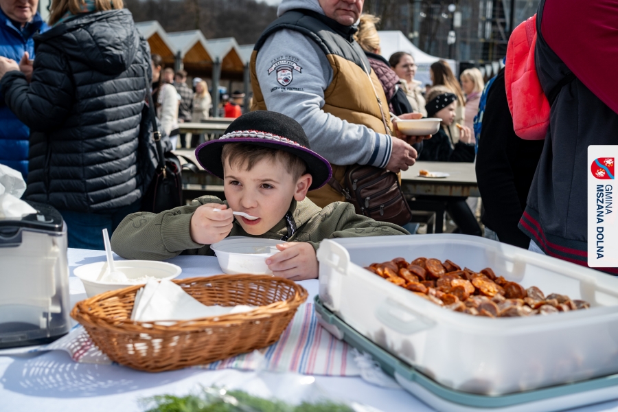 Kulminacją weekendu była "Bitwa na sodrę", zorganizowana podczas V Jarmarku Wielkanocnego. Wydarzenie stało się przestrzenią do prezentacji tradycji kulinarnych oraz integracji polsko‑słowackiej. Nasi partnerzy z Obec Lendak zaprezentowali swoją tradycyjną wielkanocną „polevkę”, zdobywając wyróżnienie w konkursie "Scodro łyske". „Złota chochla” trafiła do Łostowianek, srebrną odebrał główny kucharz Klubu Senior +, a brązowe ex aequo Śwarne Babki z Łętowego i Gosposie z Mszany Górnej. W wydarzeniu uczestniczył również Starosta Lendaku, Miro Koščák, reprezentując partnerski samorząd wraz z rodziną i pracownikiem urzędu.