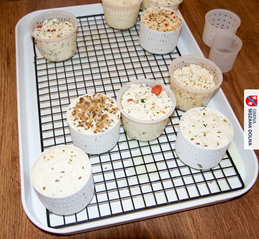Następnie prowadząca krok po kroku pokazała, co dokładnie dodaje się do mleka, w jakiej kolejności i dlaczego, wyjaśniając wszystkie reakcje zachodzące podczas produkcji sera. Każdy uczestnik otrzymał własny koszyczek serowarski, w którym mógł przygotować swój serek od początku do końca. W trakcie formowania serów każdy mógł dodać wybrane przyprawy: czosnek, zioła, paprykę, pieprz i wiele innych dzięki czemu powstały sery o zupełnie indywidualnym charakterze.
