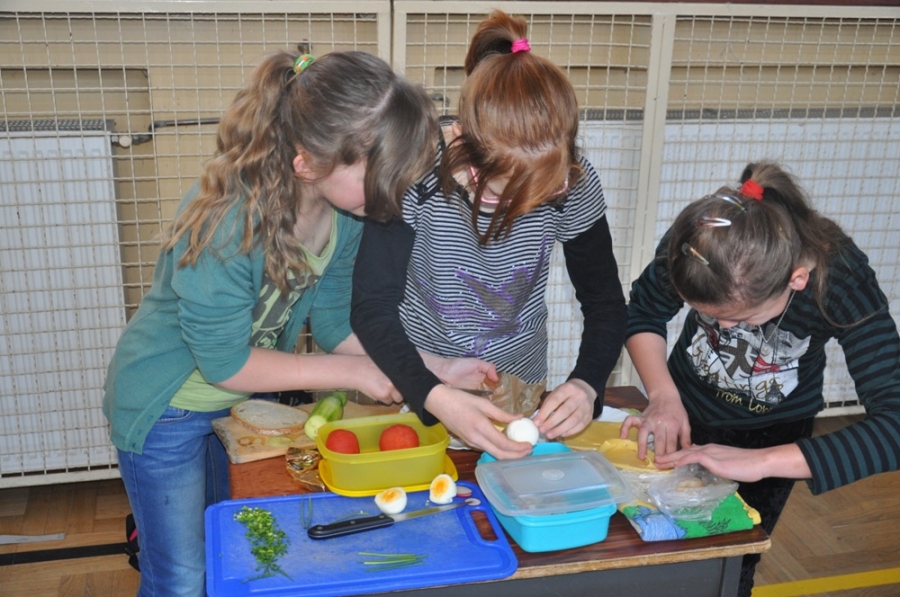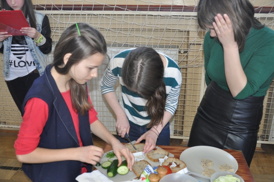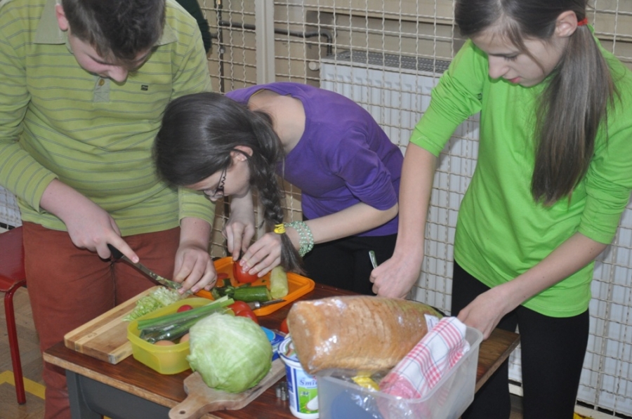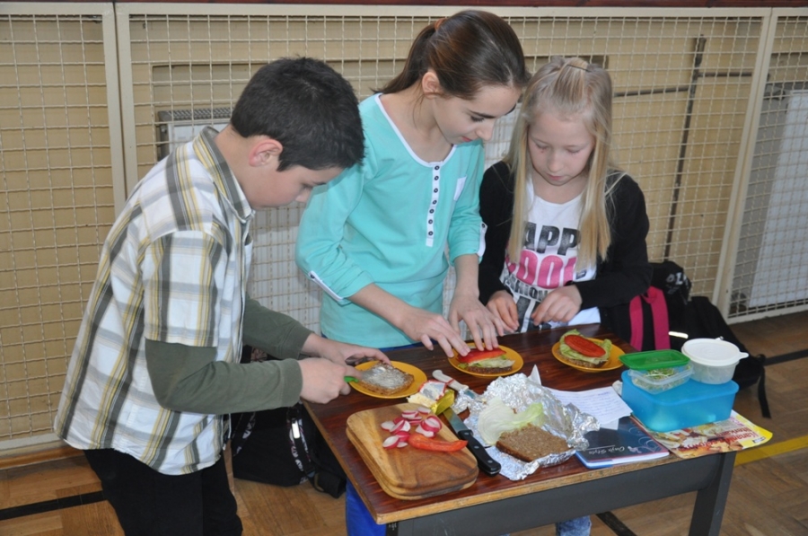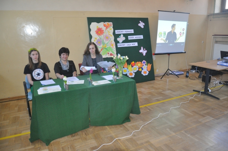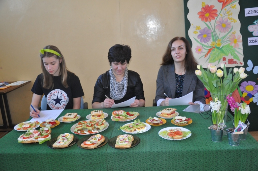 W konkursie udział wzięli reprezentanci klas 4a, 5a i 6a szkoły podstawowej oraz klasy IA, IC,IIA oraz IIIA gimnazjum. W konkursie na „zdrową, wiosenną kanapkę“ uczestnicy konkursu mieli za zadanie przygotować w czasie 15 min. wiosenne kanapki ze zdrowych produktów, które musieli zaprezentować przed trzyosobowym jury, w skład którego wchodzili: p.dyrektor Janina Ziemianin, p. nauczyciel biologii i chemii Marta Lorenc oraz przedstawiciel Samorządu Uczniowskiego Aleksandra Kowalczyk. W czasie, gdy uczestnicy konkursu przygotowywali potrawy pozostali uczniowie oglądali film p.t. „Zachowaj równowagę”, w którym występuje znany z kulinarnych programów telewizyjnych Pascal Brodnicki. Słynny kucharz w filmie zachęca i przekonuje dzieci i młodzież do zdrowego stylu życia. Wszystkie klasy bardzo zaangażowały się w przygotowania zdrowych wiosennych kanapek, a ich przedstawiciele wykazali się rzeczową wiedzą na temat produktów, z których powstały.