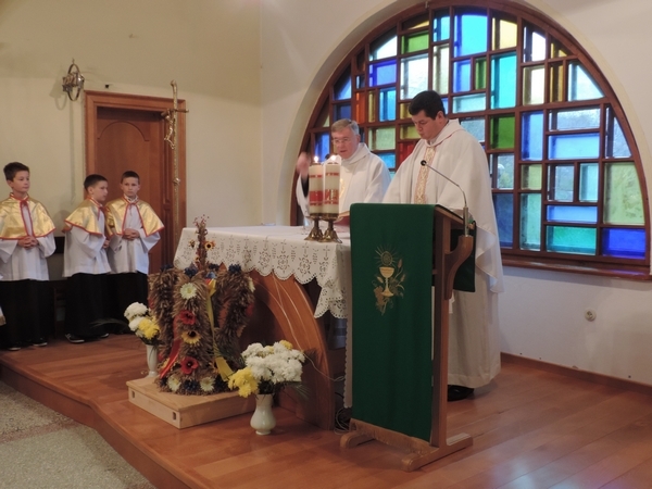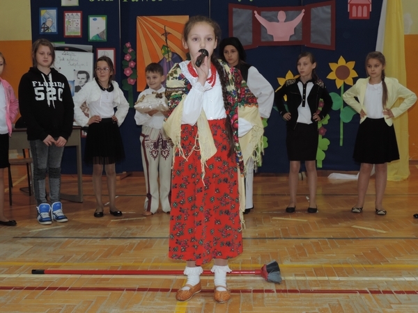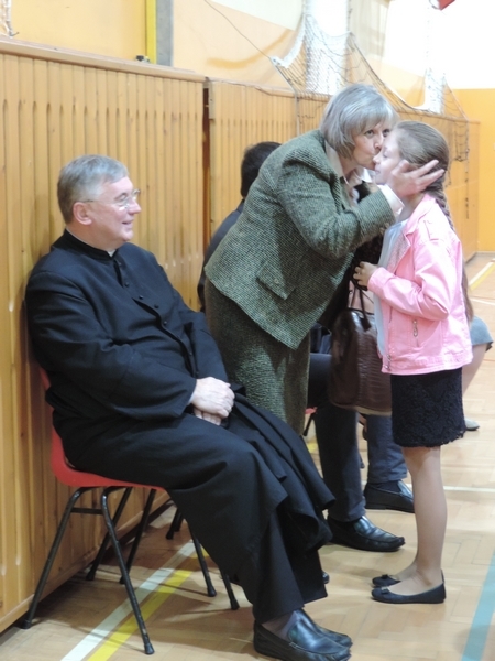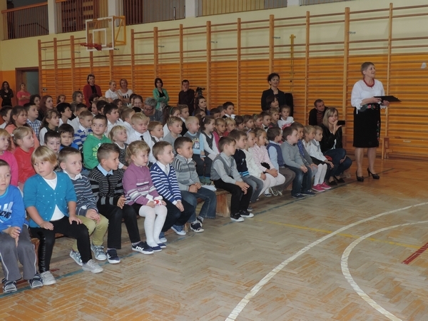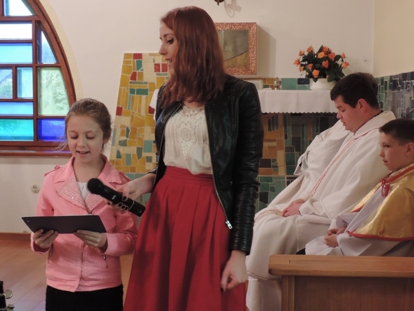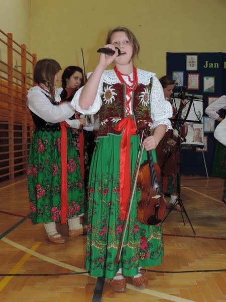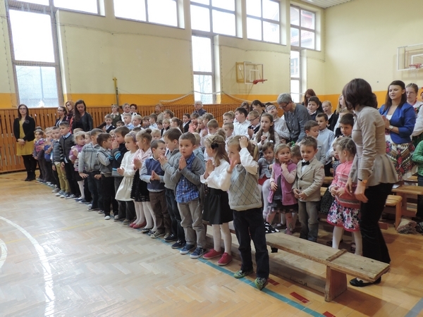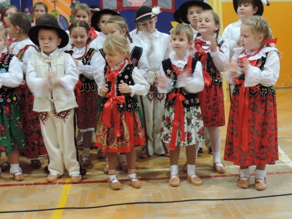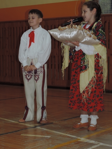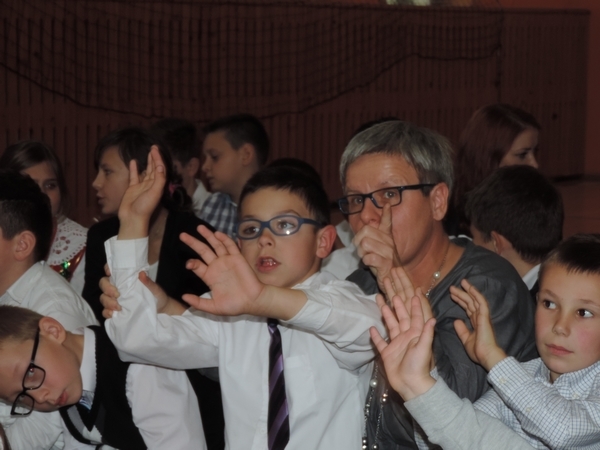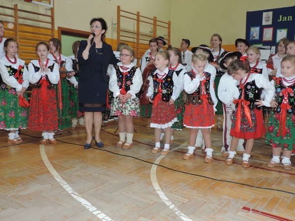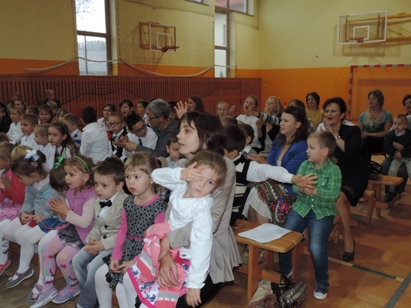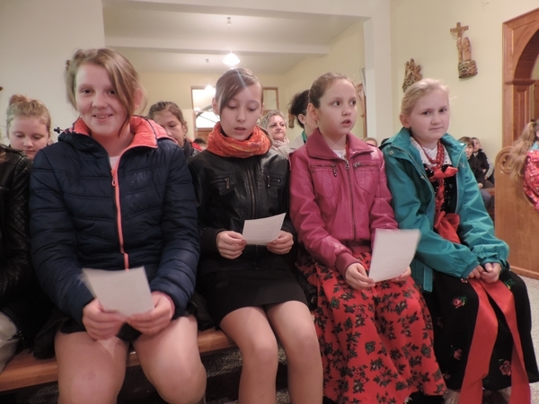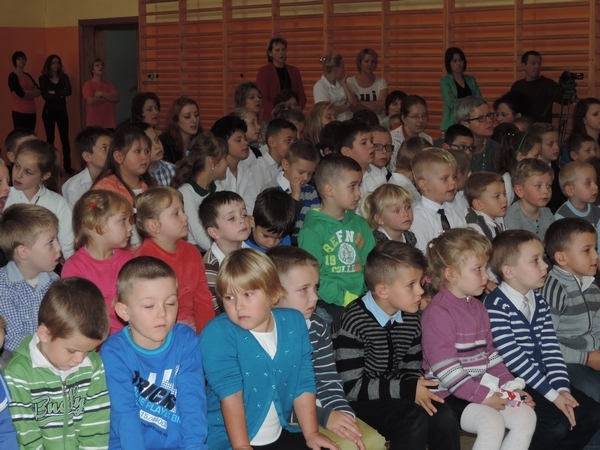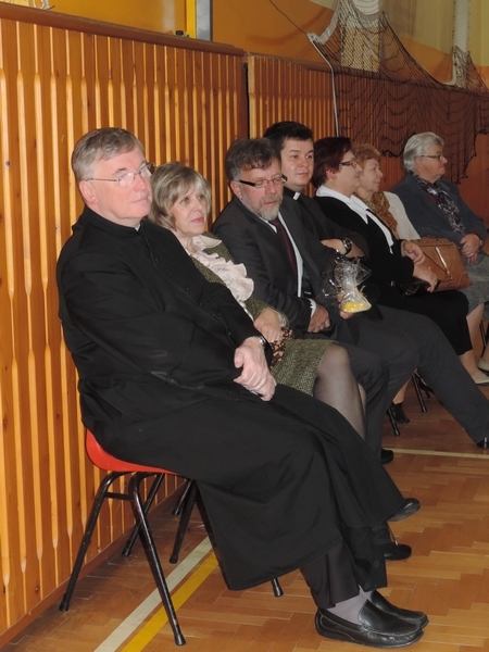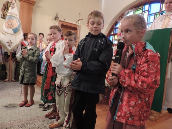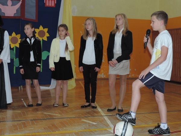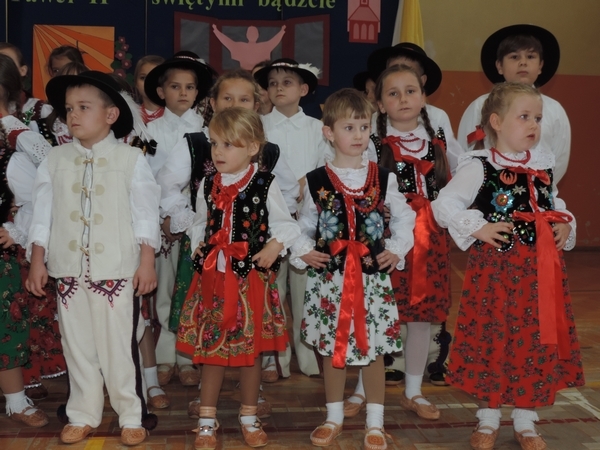 Nie zabrakło też tych najmłodszych – przedszkolaków. Po uroczystej Mszy Świętej odprawionej przez Księdza Proboszcza – Jerzego Raźnego oraz naszego katechetę - księdza Tomasza udaliśmy się na autorski program słowno-muzyczny, przygotowany przez naszych uczniów pod kierunkiem pani katechetki Doroty – przebieg uroczystości relacjonują organizatorzy. Starsi uczniowie przybliżyli nam postać Św. Jana Pawła II, który swoim życiem dawał świadectwo wielkiej miłości do Boga i ludzi, a pomagając innym, wskazywał drogę do świętości. Przypomnieli, że świętymi zostały również dzieci w ich wieku, a nawet młodsze. Odwiedzili nas: Tereska od Dzieciątka Jezus, Franciszek i Hiacynta oraz Dominik Savio. Święci dali kilka dobrych rad. Żeby zostać świętymi musimy w zwykłe czynności wkładać bardzo dużo starań i miłości. Nie możemy zapomnieć też o modlitwie i talentach, które dostaliśmy. Uczniowie wykazali się nie tylko talentem aktorskim, ale też zdolnościami muzycznymi. Do teraz w naszych uszach dźwięczy refren jednej z piosenek: „Nie ma lepszego od Jana Pawła II,  nie ma lepszego od Patrona naszego.” Nasi pierwszacy przypomnieli nam, jak to Pan Jezus trudził się przy pracy, gdy był mały. Nie zabrakło też występu kapeli i zespołu „Mali Łostowianie”, którzy swoim śpiewem umilili uroczystość. Najmłodsza wokalistka ma zaledwie 3 latka. Po występach wszyscy zostali zaproszeni na uroczysty obiad.