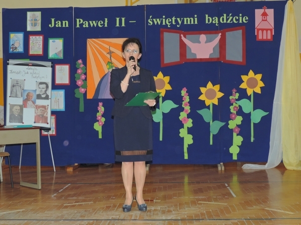 Jan Paweł II – Świętymi bądźcie. Hasło to przyświecało świętu szkoły w Zespole Szkoły i Przedszkola Łostówce. W uroczystości brali udział uczniowie, nauczyciele i pracownicy niepedagogiczni oraz zaproszeni goście: Wójt Gminy Mszana Dolna pan Bolesław Żaba, Przewodniczący Rady Gminy pan Jan Chorągwicki, Sołtys pani Maria Farganus, a także emerytowani pracownicy szkoły