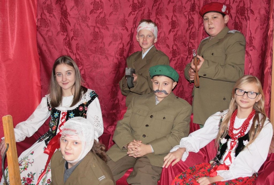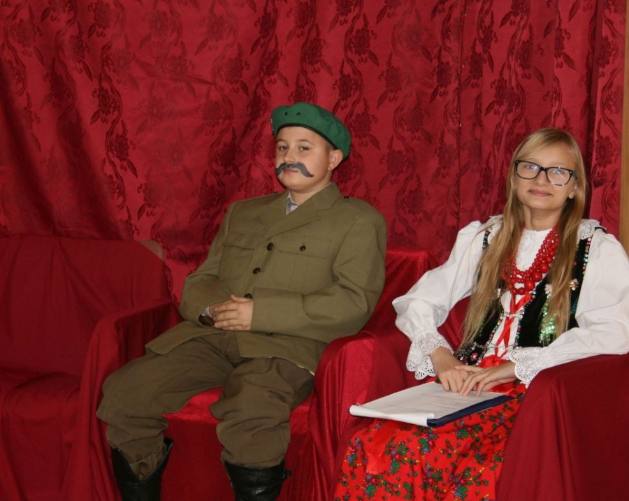 A wiemy, że był to niezwykle trudny i burzliwy okres w dziejach naszego kraju…. Polska po III rozbiorze zniknęła z map świata na 123 lata i upragnioną wolność odzyskała dopiero pamiętnego 11 listopada 1918 roku. Klasa VI chciała pokazać zarys tamtych dni wcielając się w różne role i pokazując fragmenty z naszej przeszłości… Tym razem przywołaliśmy postaci: Piłsudskiego, legionistów i ułanów… pojawili się również chłopi