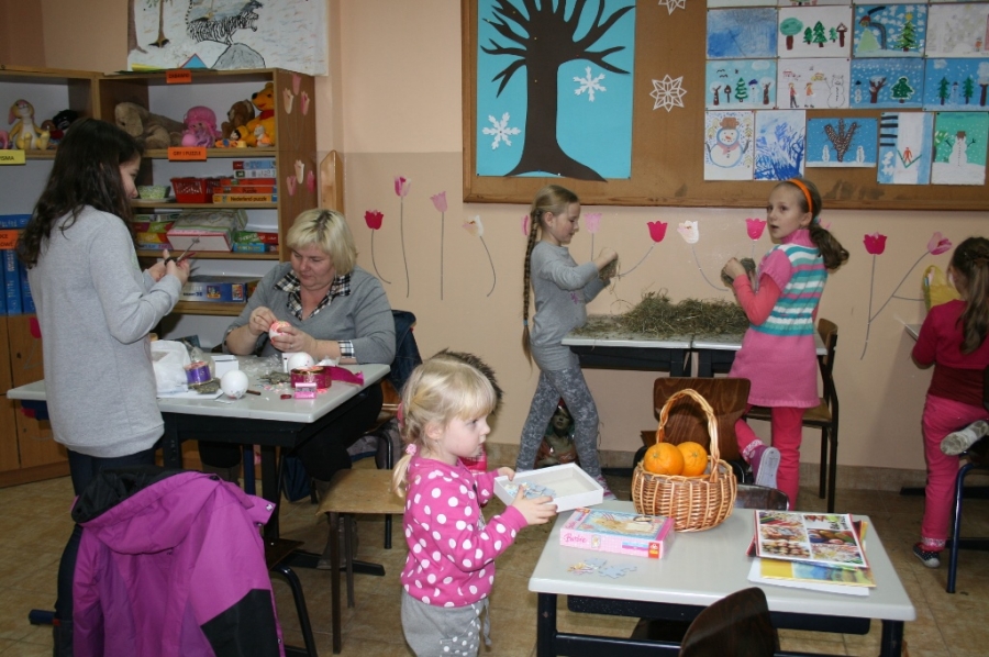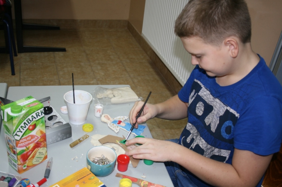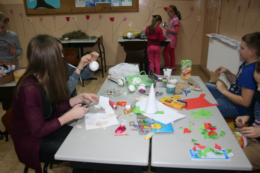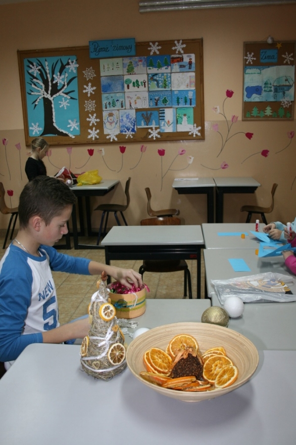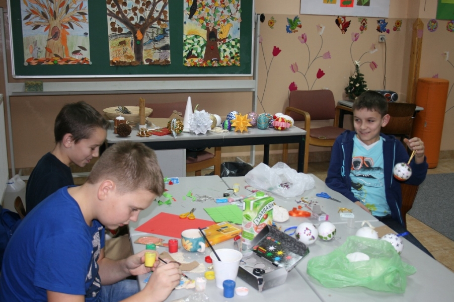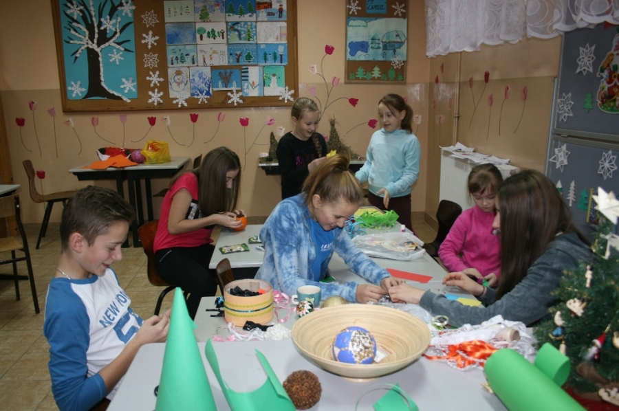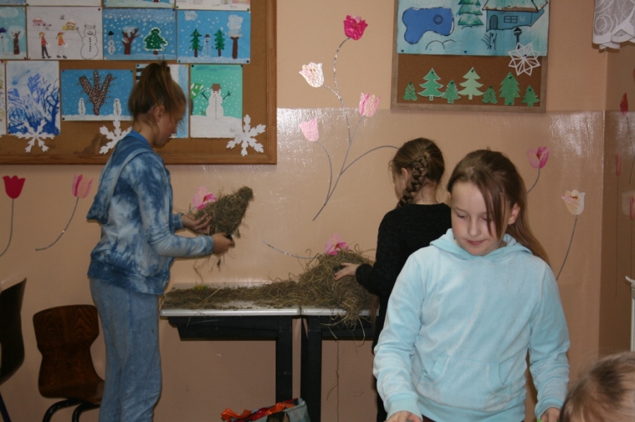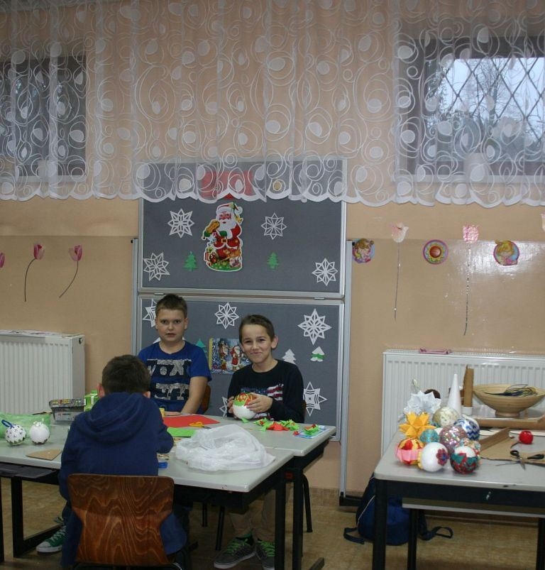 w świetlicy szkolnej. Wszystkie ozdoby zostały wykonane przez wychowanków szkoły podczas warsztatów, zajęć kółka plastycznego oraz zajęć świetlicowych.