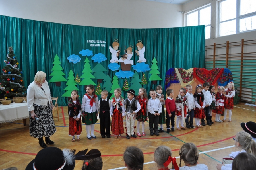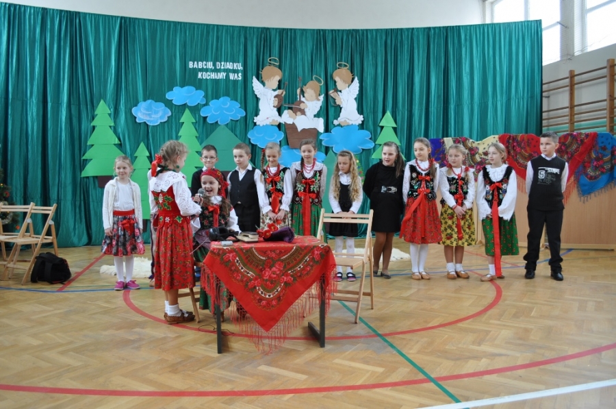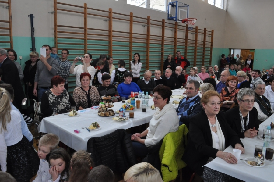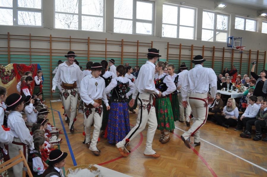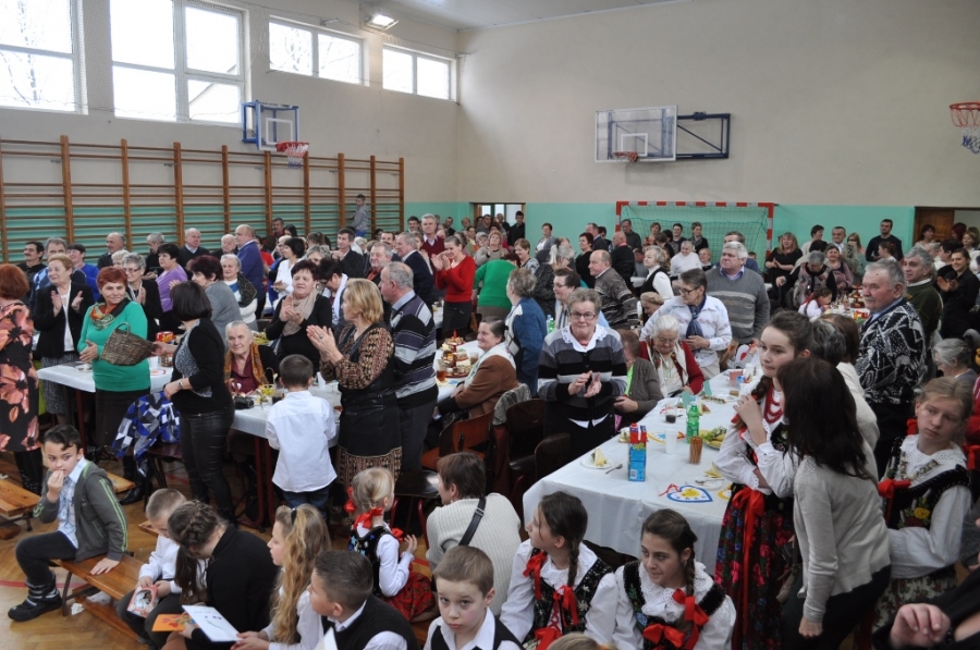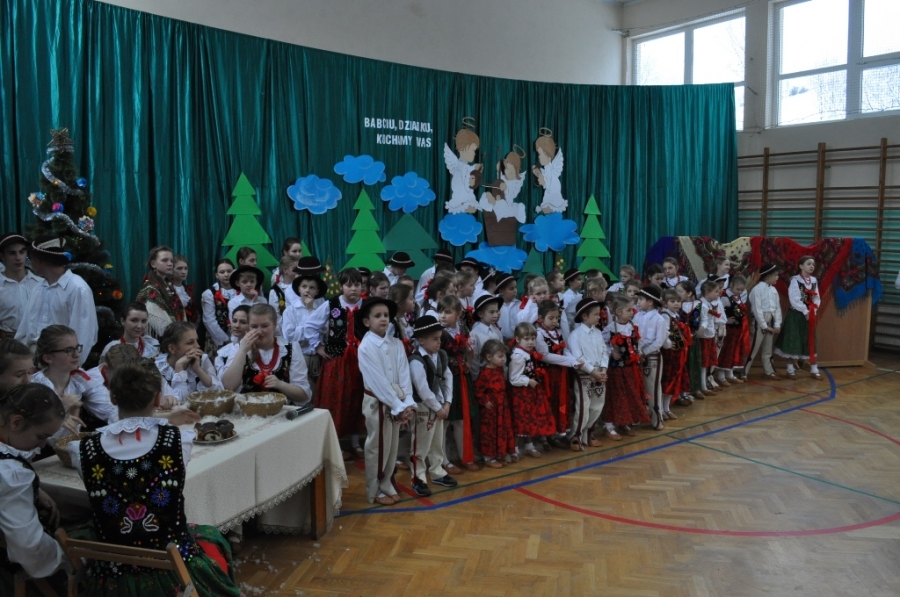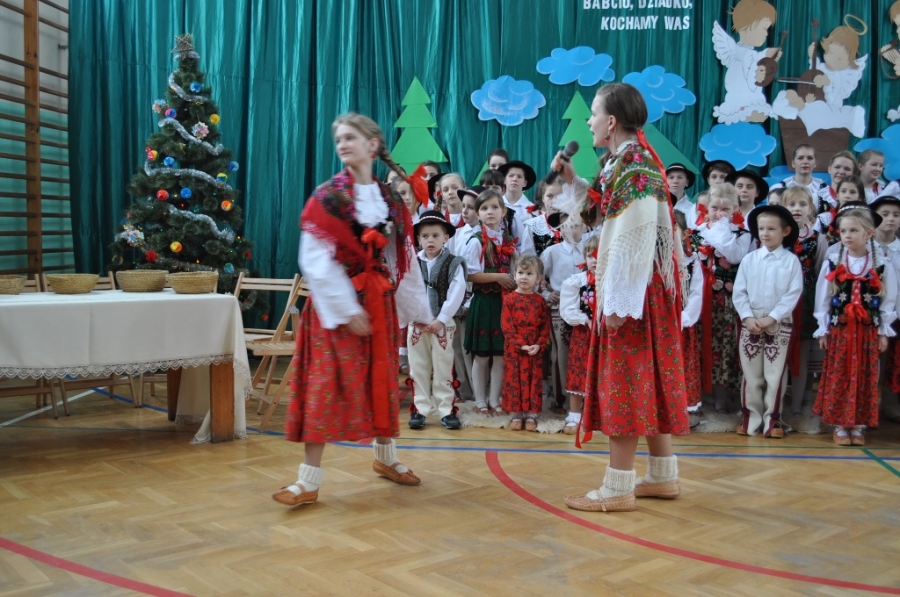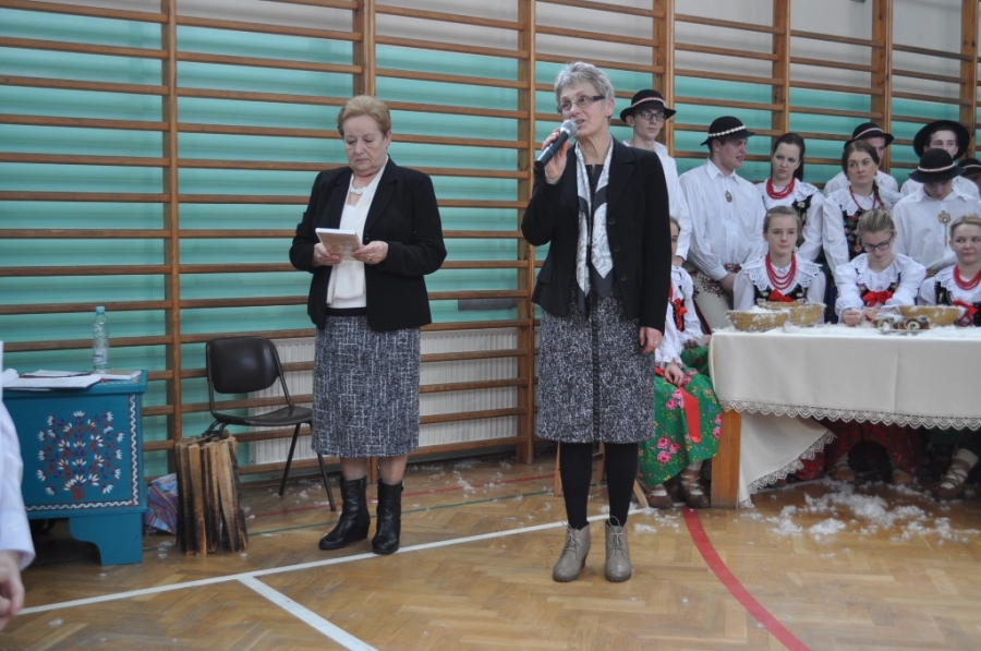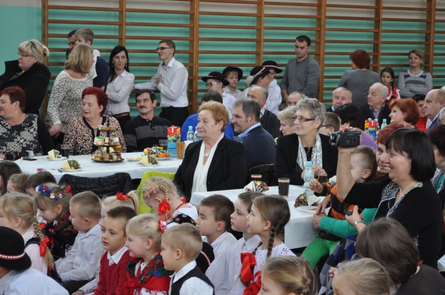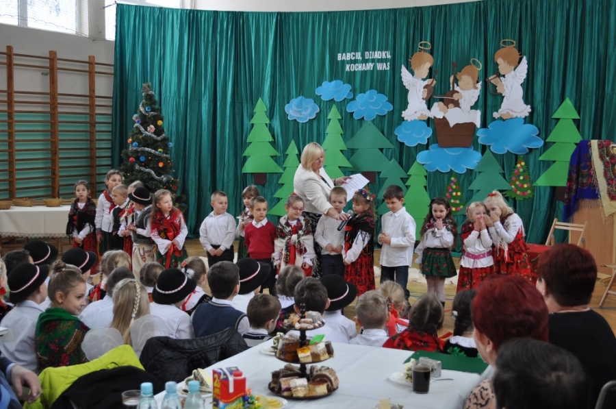 Zaproszeni dziadkowie licznie przybyli, aby podziwiać występy swoich wnucząt. Dla kochanych gości przygotowano poczęstunek oraz wspaniały program artystyczny. Uroczystość rozpoczęła klasa 0, która piosenką i wierszami wprowadziła wszystkich w odświętny nastrój. Wspaniałymi aktorami okazali się uczniowie z kl. II i III, którzy zaprezentowali przedstawienia o Babci i Dziadku. Program artystyczny zapewnił przybyłych gości o tym, że ich wnuczęta nie tylko osiągają wspaniałe wyniki w nauce, ale również posiadają zdolności muzyczne oraz aktorskie. W kolejnej części uroczystości wystąpiła klasa I wraz z Zespołem Regionalnym ,,Mali Zagórzanie’’ oraz ,,Doliną Mszanki’’. W swoim programie przedstawili obrzęd ,,Skubania pierza’’ gdzie nie zabrakło pięknie zaśpiewanych kolęd i pastorałek oraz tańców wykonanych przez dorosłych jak i małych górali. Nie zabrakło życzeń tym razem wyśpiewanych i skierowanych do najbliższych. Każda Babcia i Dziadek otrzymali piękny upominek wykonany własnoręcznie przez Zespół ,,Mali Zagórzanie i Dolinę Mszanki’’. Wzruszeń nie było końca w niejednych oczach widać było radość i szczęście. Oklasków nie brakowało. Gorące słowa podziękowania należą się również rodzicom, którzy nie tylko dowieźli honorowych gości na uroczystość, ale okazali dużą pomoc w przygotowaniu i przeprowadzeniu imprezy. Dziękujemy również Przewodniczącej Rady Gminy Mszana Dolna – Pani Aleksandrze Kani, która przyjęła nasze zaproszenie i przybyła na tę wspaniałą uroczystość. Życzenia drogim solenizantom złożyła także Pani Marta Skowronek , dyrektor ZPO w Mszanie Górnej.