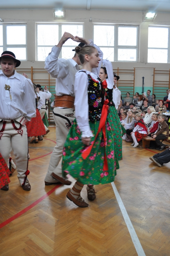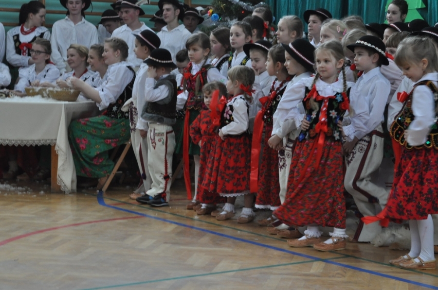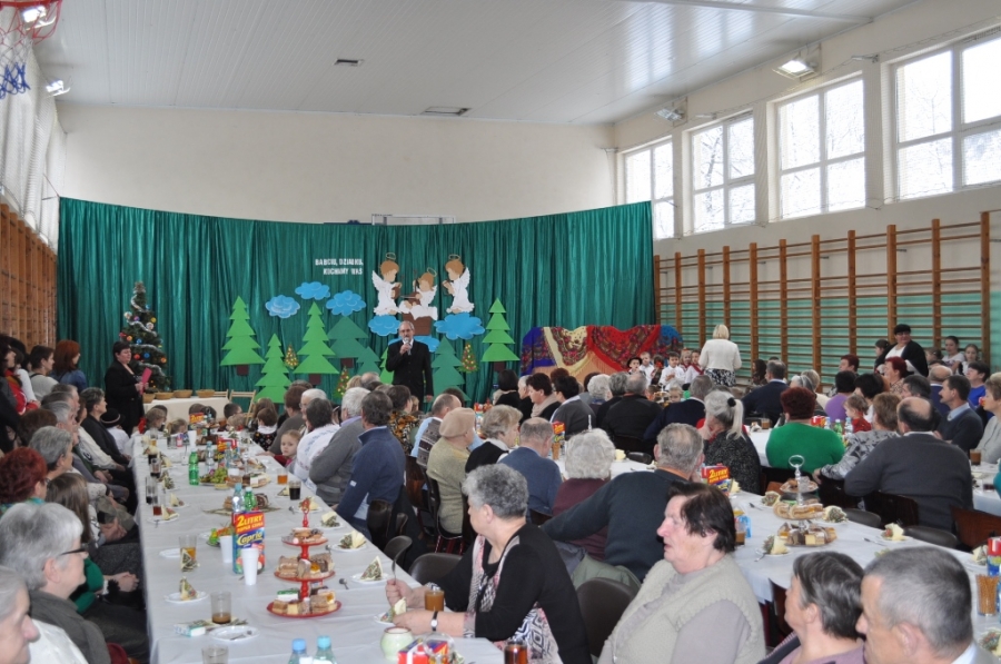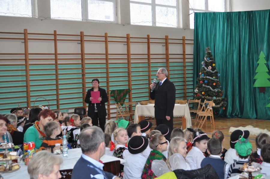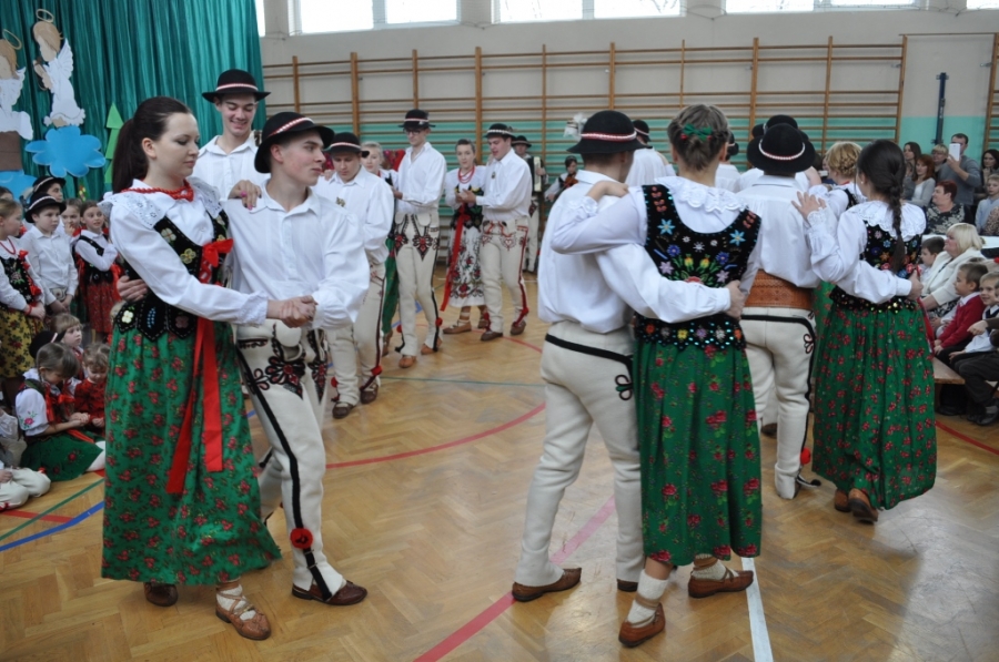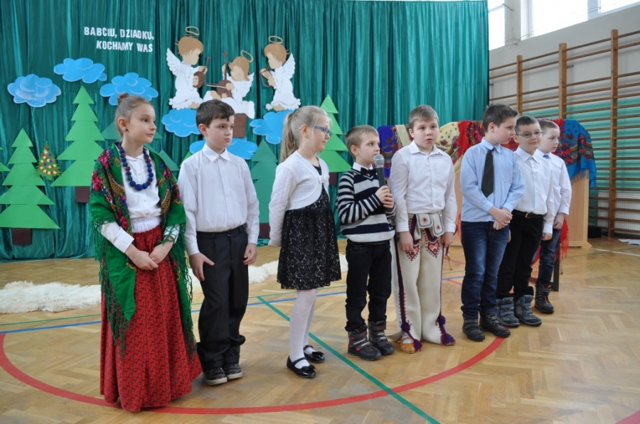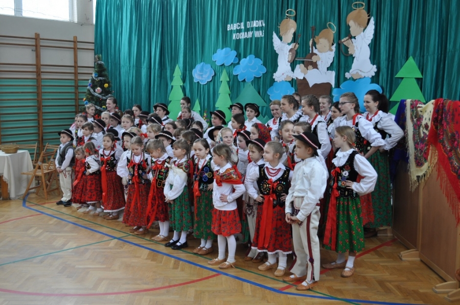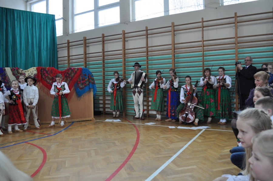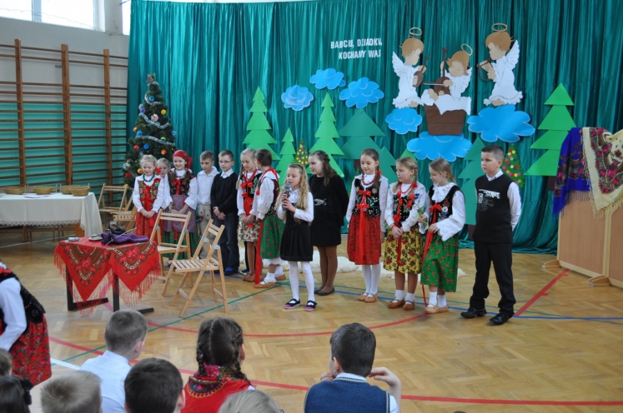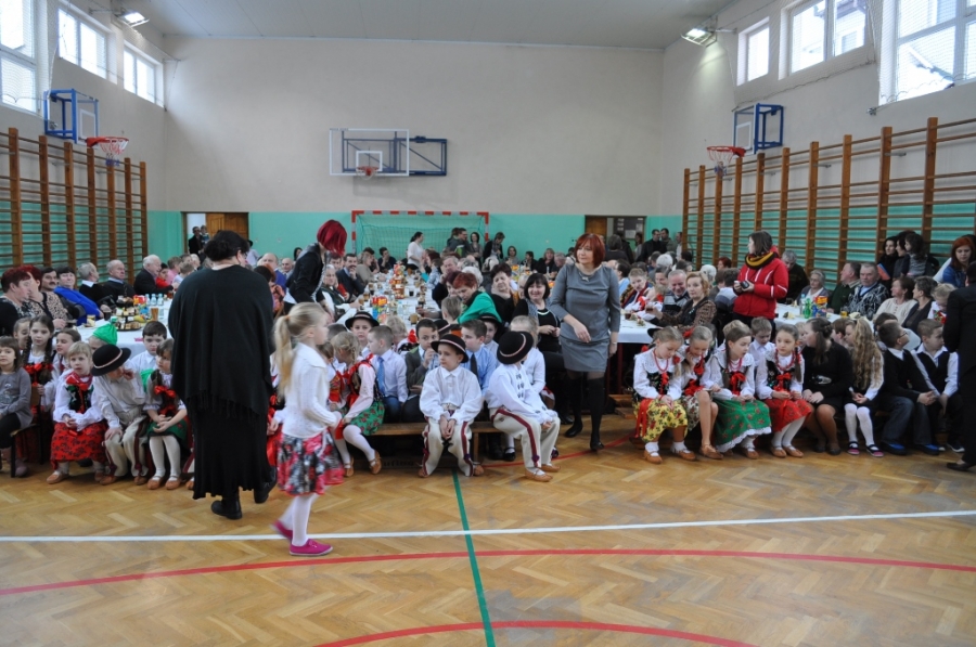 Zaproszeni dziadkowie licznie przybyli, aby podziwiać występy swoich wnucząt. Dla kochanych gości przygotowano poczęstunek oraz wspaniały program artystyczny. Uroczystość rozpoczęła klasa 0, która piosenką i wierszami wprowadziła wszystkich w odświętny nastrój. Wspaniałymi aktorami okazali się uczniowie z kl. II i III, którzy zaprezentowali przedstawienia o Babci i Dziadku. Program artystyczny zapewnił przybyłych gości o tym, że ich wnuczęta nie tylko osiągają wspaniałe wyniki w nauce, ale również posiadają zdolności muzyczne oraz aktorskie. W kolejnej części uroczystości wystąpiła klasa I wraz z Zespołem Regionalnym ,,Mali Zagórzanie’’ oraz ,,Doliną Mszanki’’. W swoim programie przedstawili obrzęd ,,Skubania pierza’’ gdzie nie zabrakło pięknie zaśpiewanych kolęd i pastorałek oraz tańców wykonanych przez dorosłych jak i małych górali. Nie zabrakło życzeń tym razem wyśpiewanych i skierowanych do najbliższych. Każda Babcia i Dziadek otrzymali piękny upominek wykonany własnoręcznie przez Zespół ,,Mali Zagórzanie i Dolinę Mszanki’’. Wzruszeń nie było końca w niejednych oczach widać było radość i szczęście. Oklasków nie brakowało. Gorące słowa podziękowania należą się również rodzicom, którzy nie tylko dowieźli honorowych gości na uroczystość, ale okazali dużą pomoc w przygotowaniu i przeprowadzeniu imprezy. Dziękujemy również Przewodniczącej Rady Gminy Mszana Dolna – Pani Aleksandrze Kani, która przyjęła nasze zaproszenie i przybyła na tę wspaniałą uroczystość. Życzenia drogim solenizantom złożyła także Pani Marta Skowronek , dyrektor ZPO w Mszanie Górnej.