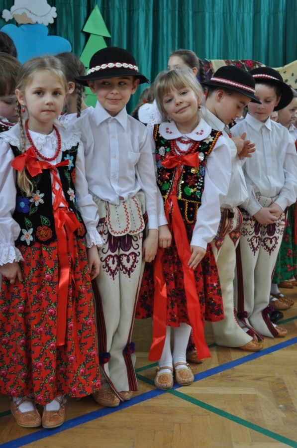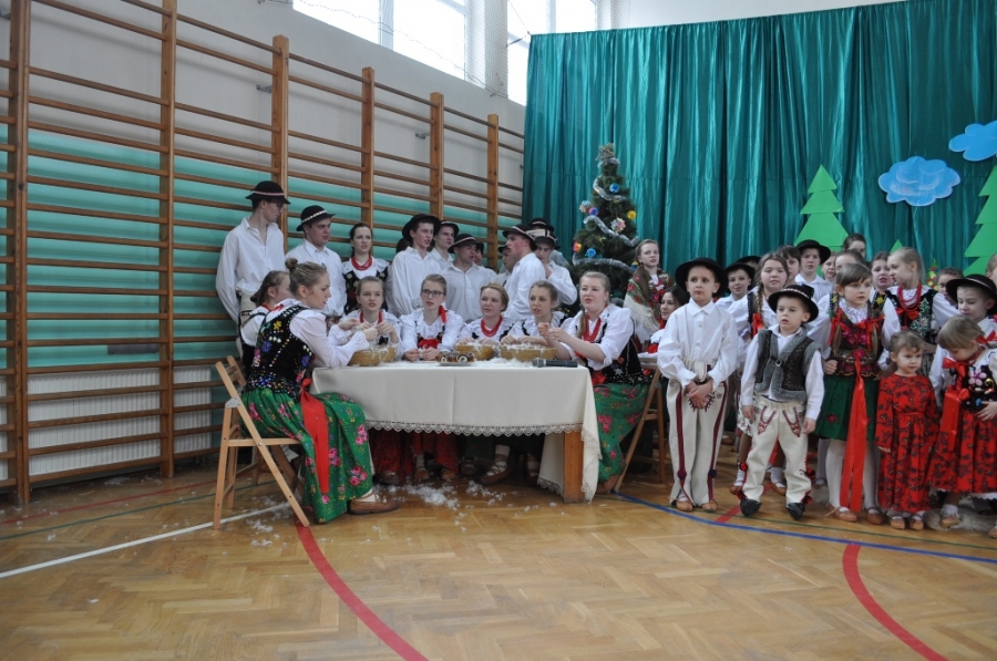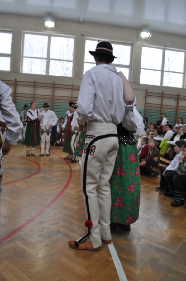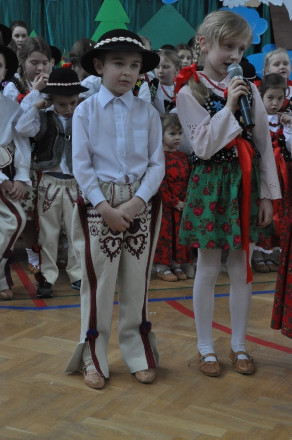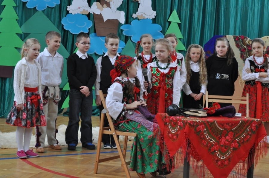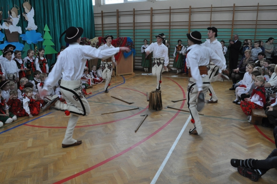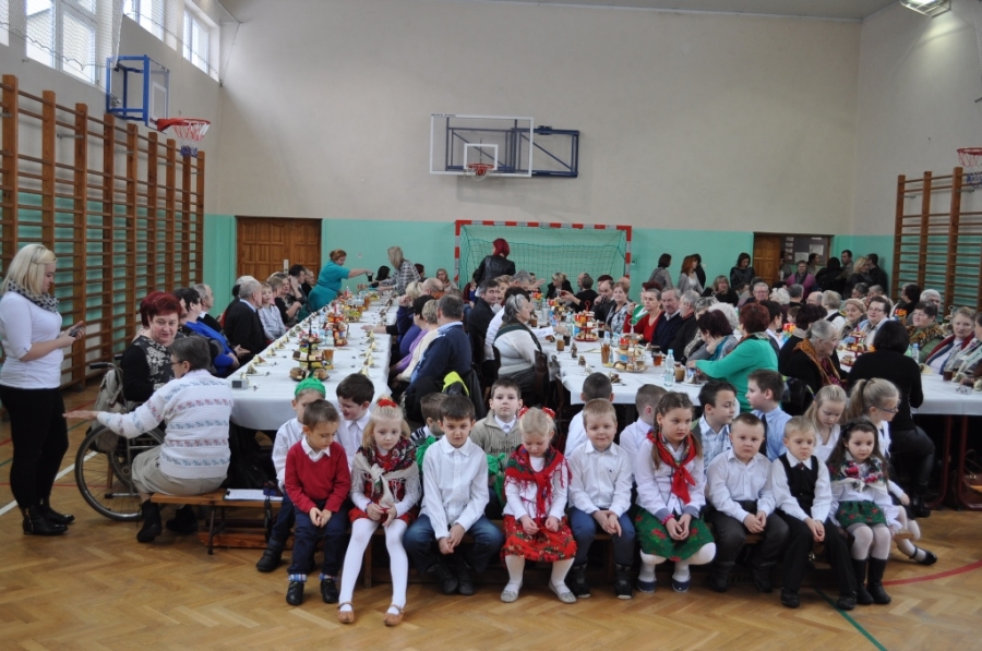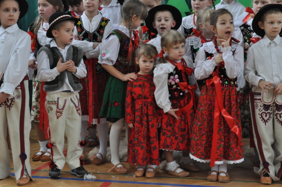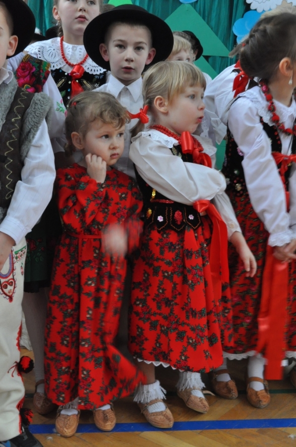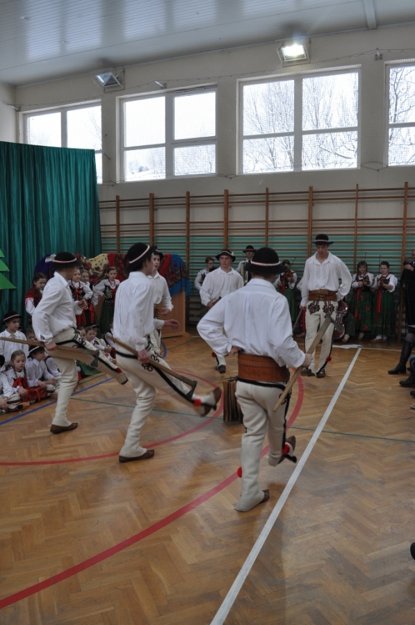 Zaproszeni dziadkowie licznie przybyli, aby podziwiać występy swoich wnucząt. Dla kochanych gości przygotowano poczęstunek oraz wspaniały program artystyczny. Uroczystość rozpoczęła klasa 0, która piosenką i wierszami wprowadziła wszystkich w odświętny nastrój. Wspaniałymi aktorami okazali się uczniowie z kl. II i III, którzy zaprezentowali przedstawienia o Babci i Dziadku. Program artystyczny zapewnił przybyłych gości o tym, że ich wnuczęta nie tylko osiągają wspaniałe wyniki w nauce, ale również posiadają zdolności muzyczne oraz aktorskie. W kolejnej części uroczystości wystąpiła klasa I wraz z Zespołem Regionalnym ,,Mali Zagórzanie’’ oraz ,,Doliną Mszanki’’. W swoim programie przedstawili obrzęd ,,Skubania pierza’’ gdzie nie zabrakło pięknie zaśpiewanych kolęd i pastorałek oraz tańców wykonanych przez dorosłych jak i małych górali. Nie zabrakło życzeń tym razem wyśpiewanych i skierowanych do najbliższych. Każda Babcia i Dziadek otrzymali piękny upominek wykonany własnoręcznie przez Zespół ,,Mali Zagórzanie i Dolinę Mszanki’’. Wzruszeń nie było końca w niejednych oczach widać było radość i szczęście. Oklasków nie brakowało. Gorące słowa podziękowania należą się również rodzicom, którzy nie tylko dowieźli honorowych gości na uroczystość, ale okazali dużą pomoc w przygotowaniu i przeprowadzeniu imprezy. Dziękujemy również Przewodniczącej Rady Gminy Mszana Dolna – Pani Aleksandrze Kani, która przyjęła nasze zaproszenie i przybyła na tę wspaniałą uroczystość. Życzenia drogim solenizantom złożyła także Pani Marta Skowronek , dyrektor ZPO w Mszanie Górnej.