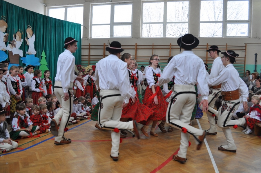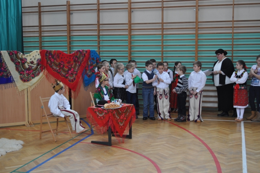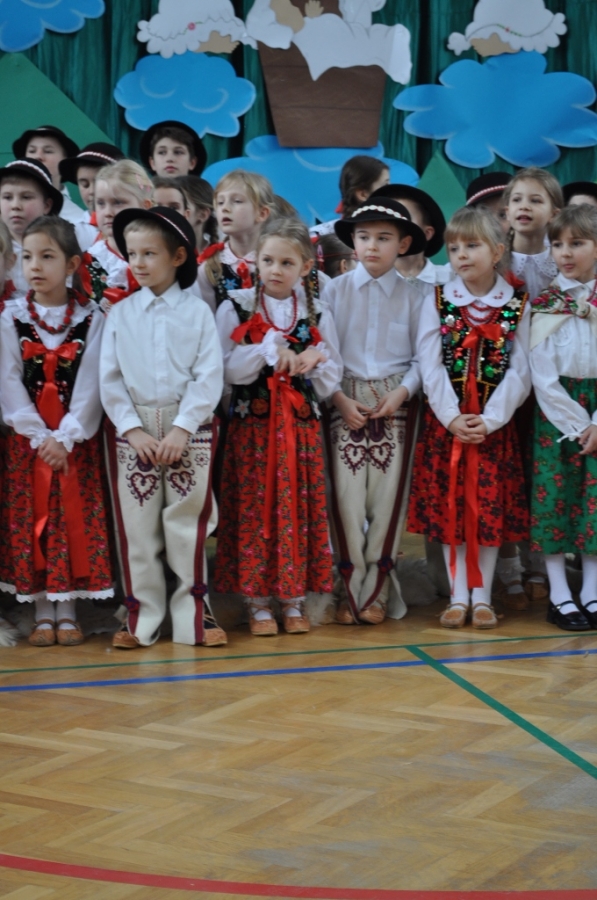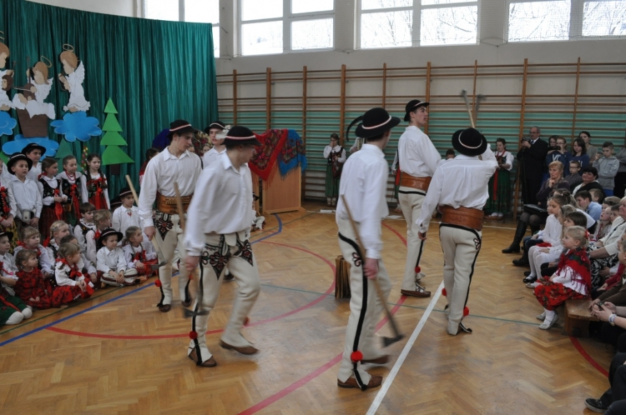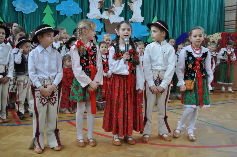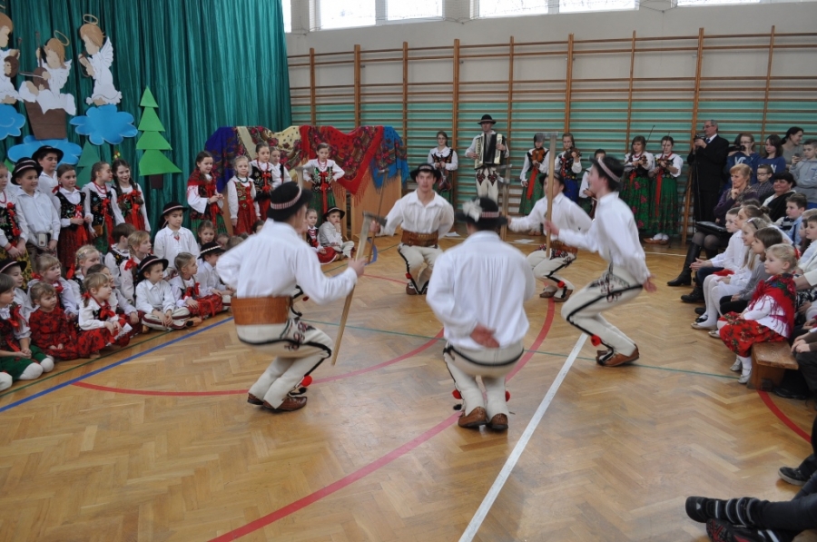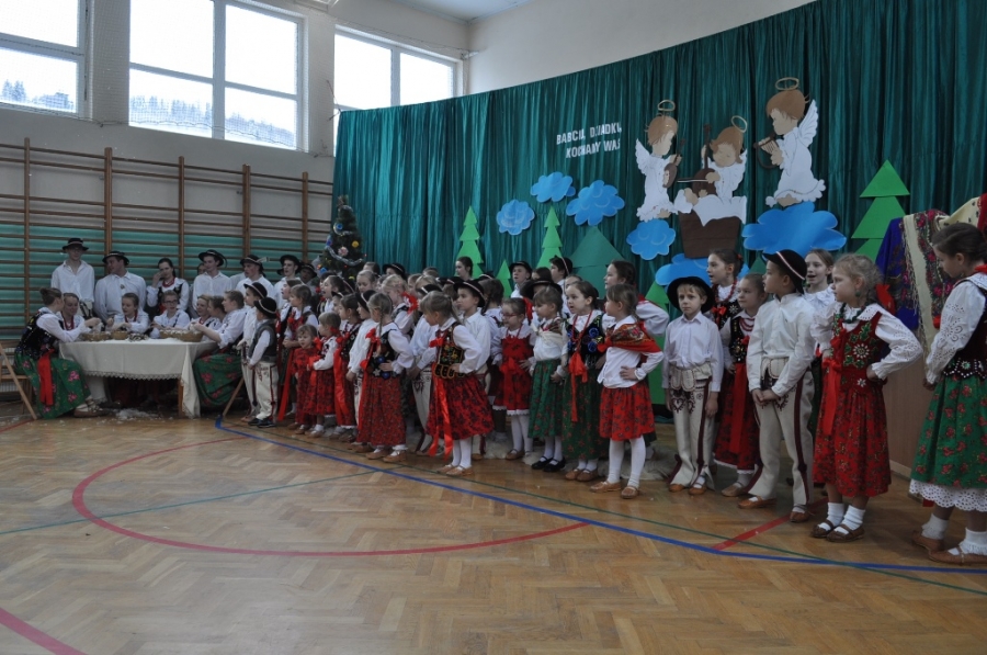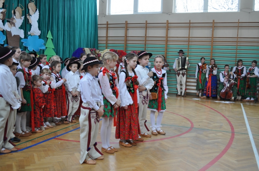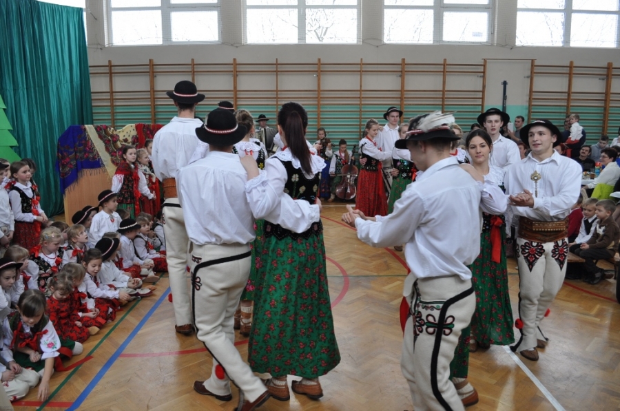 Zaproszeni dziadkowie licznie przybyli, aby podziwiać występy swoich wnucząt. Dla kochanych gości przygotowano poczęstunek oraz wspaniały program artystyczny. Uroczystość rozpoczęła klasa 0, która piosenką i wierszami wprowadziła wszystkich w odświętny nastrój. Wspaniałymi aktorami okazali się uczniowie z kl. II i III, którzy zaprezentowali przedstawienia o Babci i Dziadku. Program artystyczny zapewnił przybyłych gości o tym, że ich wnuczęta nie tylko osiągają wspaniałe wyniki w nauce, ale również posiadają zdolności muzyczne oraz aktorskie. W kolejnej części uroczystości wystąpiła klasa I wraz z Zespołem Regionalnym ,,Mali Zagórzanie’’ oraz ,,Doliną Mszanki’’. W swoim programie przedstawili obrzęd ,,Skubania pierza’’ gdzie nie zabrakło pięknie zaśpiewanych kolęd i pastorałek oraz tańców wykonanych przez dorosłych jak i małych górali. Nie zabrakło życzeń tym razem wyśpiewanych i skierowanych do najbliższych. Każda Babcia i Dziadek otrzymali piękny upominek wykonany własnoręcznie przez Zespół ,,Mali Zagórzanie i Dolinę Mszanki’’. Wzruszeń nie było końca w niejednych oczach widać było radość i szczęście. Oklasków nie brakowało. Gorące słowa podziękowania należą się również rodzicom, którzy nie tylko dowieźli honorowych gości na uroczystość, ale okazali dużą pomoc w przygotowaniu i przeprowadzeniu imprezy. Dziękujemy również Przewodniczącej Rady Gminy Mszana Dolna – Pani Aleksandrze Kani, która przyjęła nasze zaproszenie i przybyła na tę wspaniałą uroczystość. Życzenia drogim solenizantom złożyła także Pani Marta Skowronek , dyrektor ZPO w Mszanie Górnej.