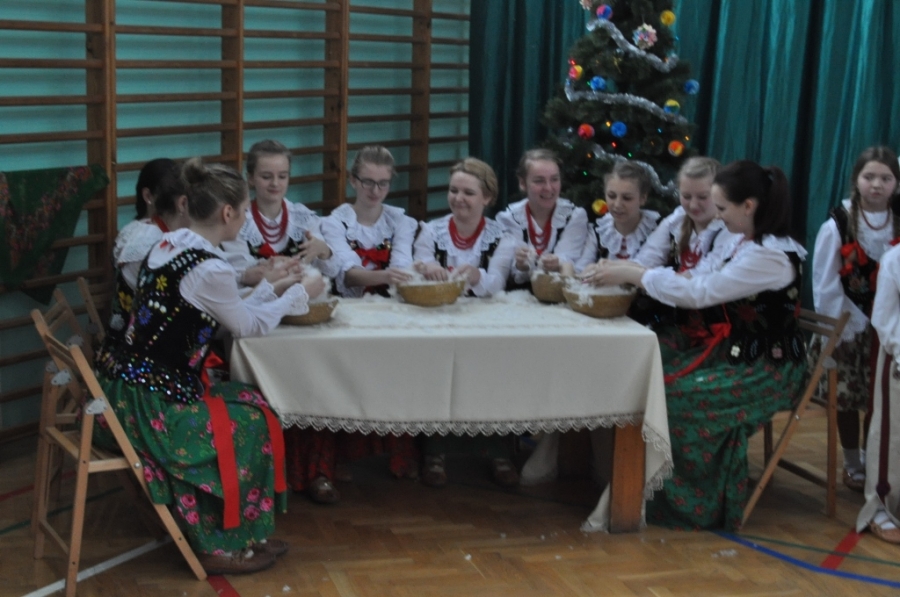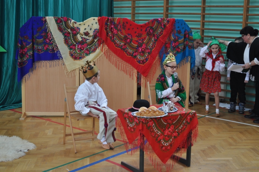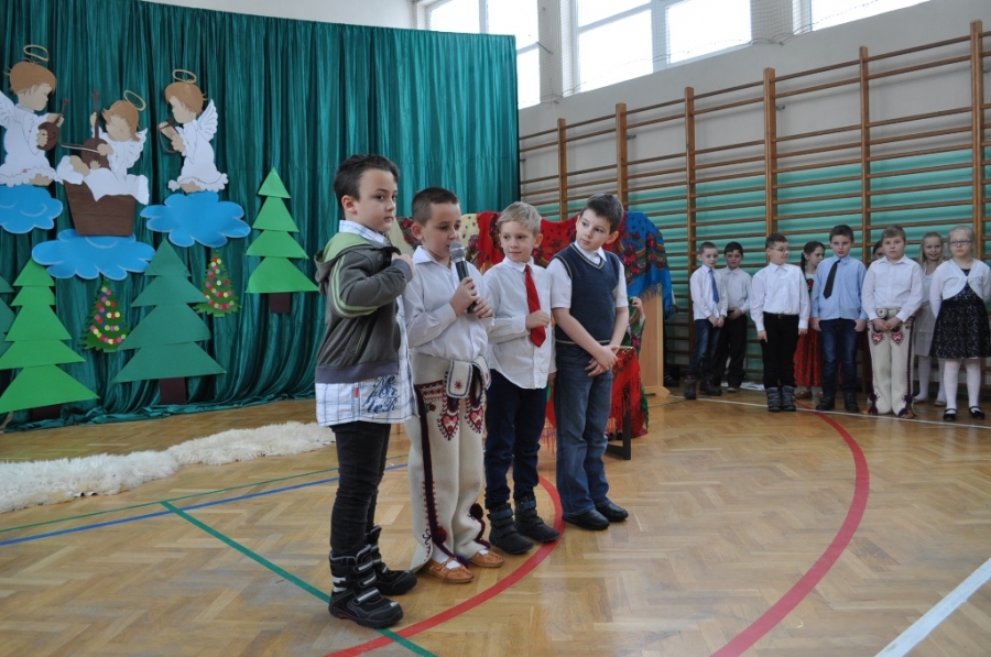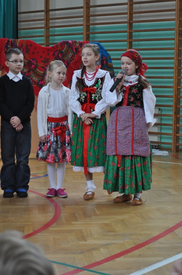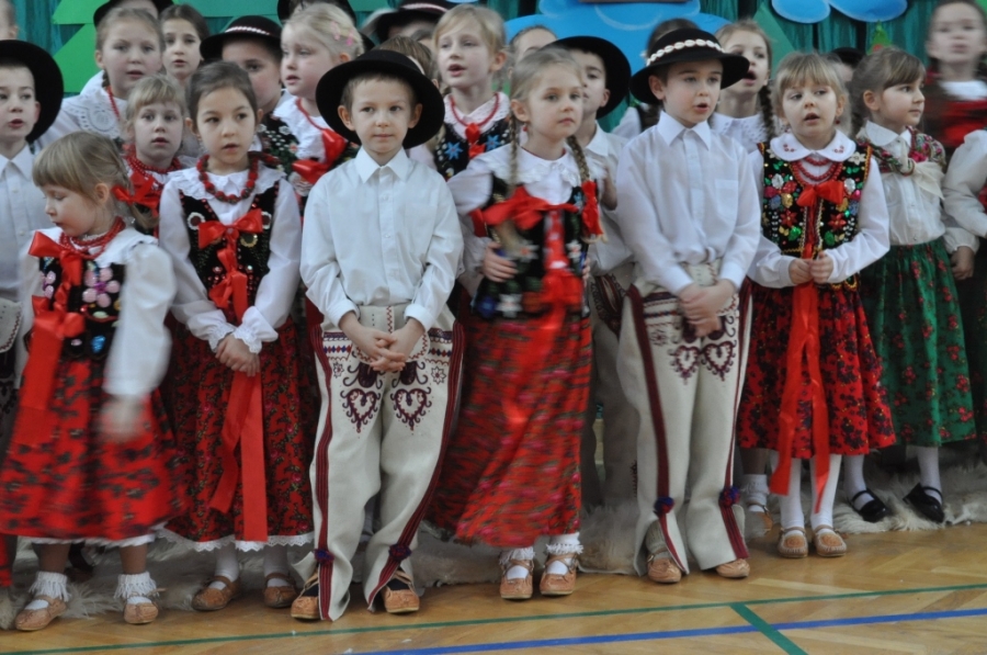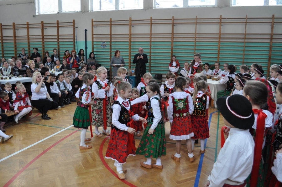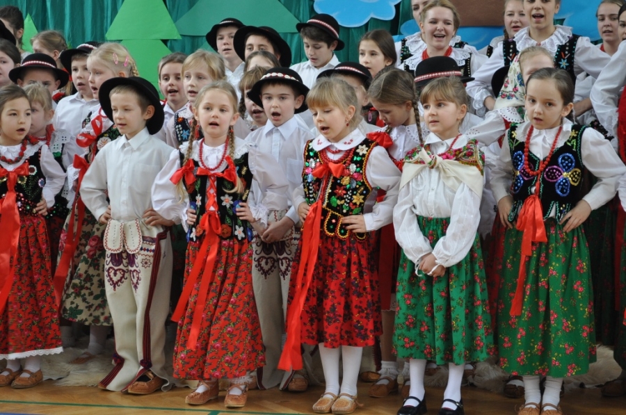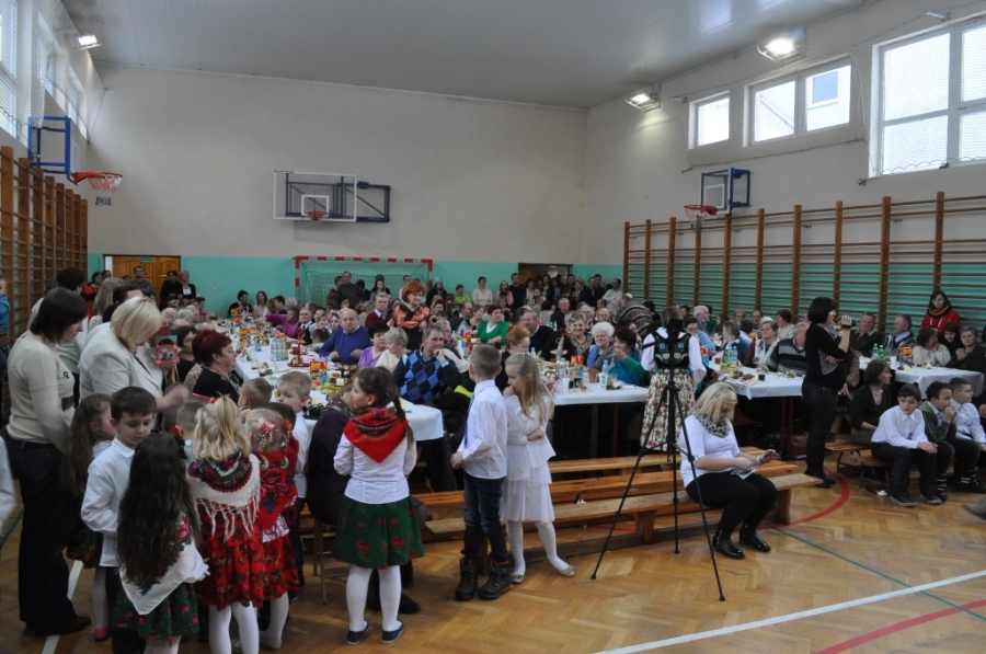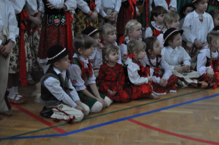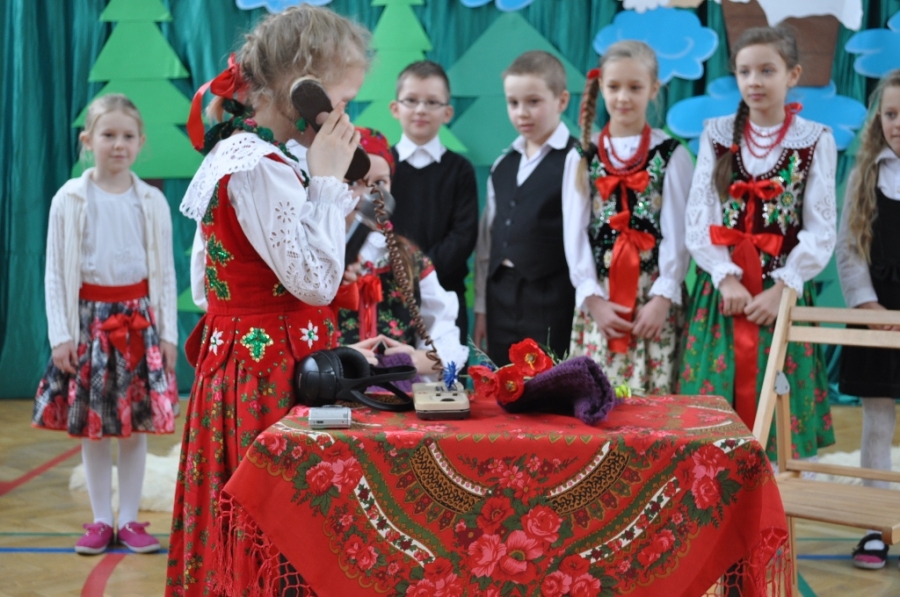 Zaproszeni dziadkowie licznie przybyli, aby podziwiać występy swoich wnucząt. Dla kochanych gości przygotowano poczęstunek oraz wspaniały program artystyczny. Uroczystość rozpoczęła klasa 0, która piosenką i wierszami wprowadziła wszystkich w odświętny nastrój. Wspaniałymi aktorami okazali się uczniowie z kl. II i III, którzy zaprezentowali przedstawienia o Babci i Dziadku. Program artystyczny zapewnił przybyłych gości o tym, że ich wnuczęta nie tylko osiągają wspaniałe wyniki w nauce, ale również posiadają zdolności muzyczne oraz aktorskie. W kolejnej części uroczystości wystąpiła klasa I wraz z Zespołem Regionalnym ,,Mali Zagórzanie’’ oraz ,,Doliną Mszanki’’. W swoim programie przedstawili obrzęd ,,Skubania pierza’’ gdzie nie zabrakło pięknie zaśpiewanych kolęd i pastorałek oraz tańców wykonanych przez dorosłych jak i małych górali. Nie zabrakło życzeń tym razem wyśpiewanych i skierowanych do najbliższych. Każda Babcia i Dziadek otrzymali piękny upominek wykonany własnoręcznie przez Zespół ,,Mali Zagórzanie i Dolinę Mszanki’’. Wzruszeń nie było końca w niejednych oczach widać było radość i szczęście. Oklasków nie brakowało. Gorące słowa podziękowania należą się również rodzicom, którzy nie tylko dowieźli honorowych gości na uroczystość, ale okazali dużą pomoc w przygotowaniu i przeprowadzeniu imprezy. Dziękujemy również Przewodniczącej Rady Gminy Mszana Dolna – Pani Aleksandrze Kani, która przyjęła nasze zaproszenie i przybyła na tę wspaniałą uroczystość. Życzenia drogim solenizantom złożyła także Pani Marta Skowronek , dyrektor ZPO w Mszanie Górnej.