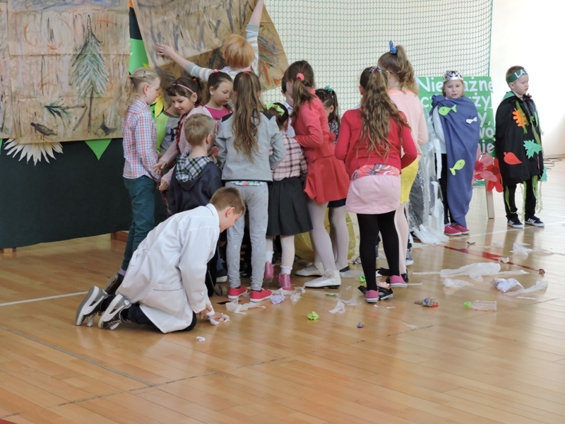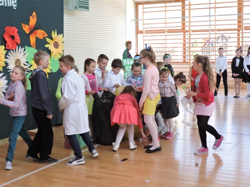 Szereg działań proekologicznych podejmuje również i prowadzi grupa uczniów uczestniczących od września 2014 r. w innowacji pedagogicznej zatwierdzonej przez Małopolskiego Kuratora Oświaty w Krakowie „Mały chwat poznaje i chroni świat”. Dzień Ziemi stał się więc dla nich okazją do zaprezentowania społeczności szkolnej inscenizacji związanej z potrzebą segregowania odpadów i koniecznością dbania o naszą zieloną planetę. Dzieci klas I – III „wyleczyły” chorą i zanieczyszczoną Ziemię oraz zadbały o to by służyła kolejnym pokoleniom.