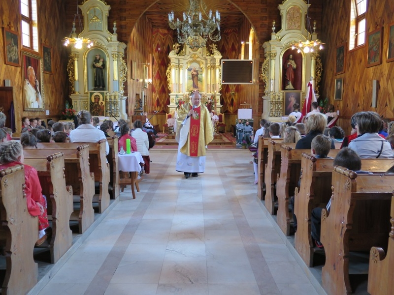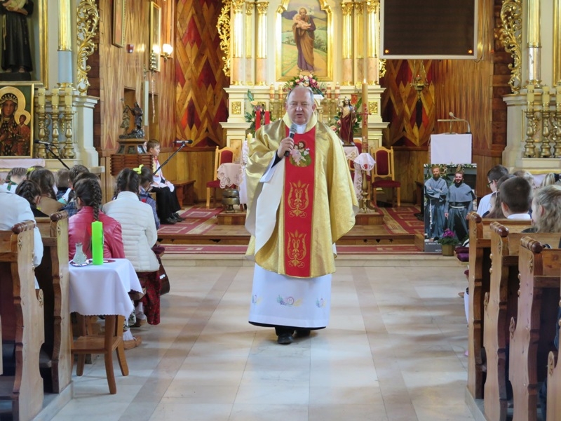 We mszy wzięli udział zaproszeni goście oraz uczniowie Szkoły Podstawowej nr 2 im. św. Stanisława Kostki w Lubomierzu.