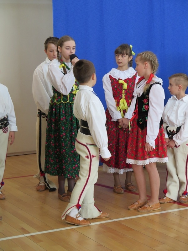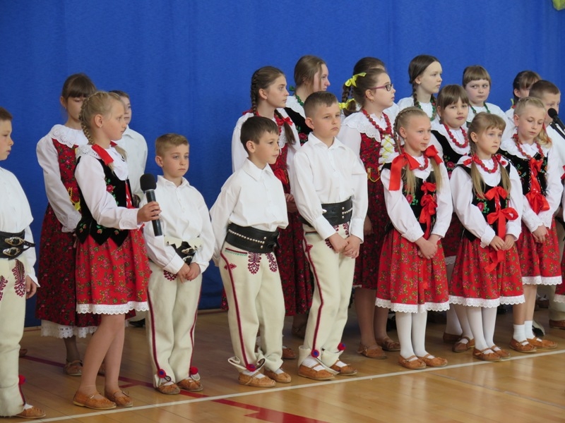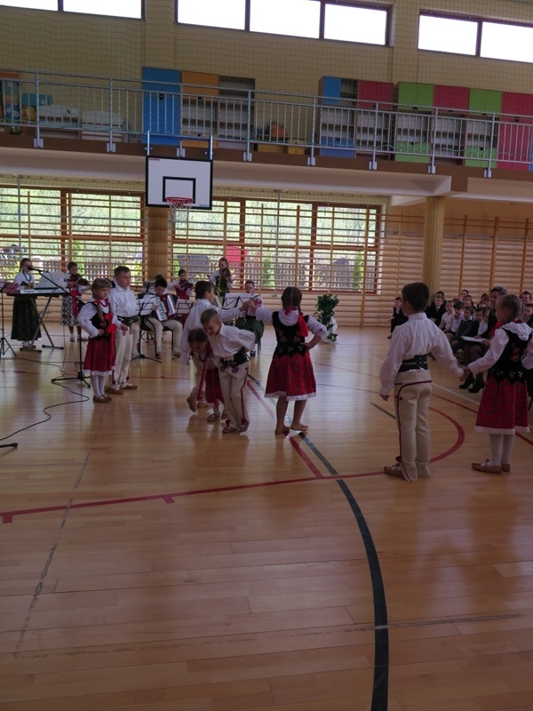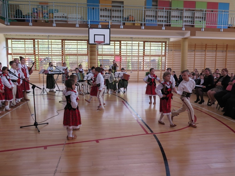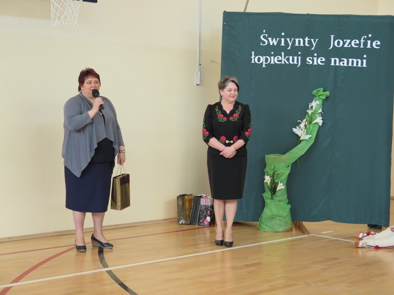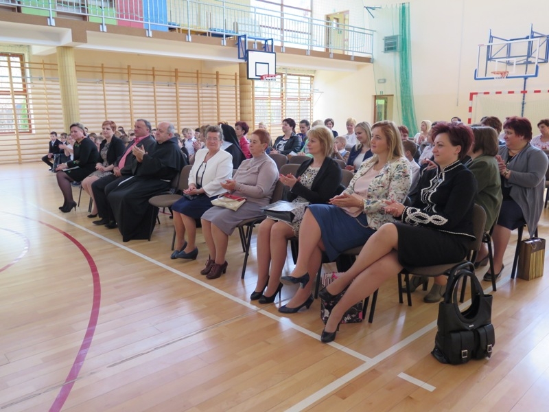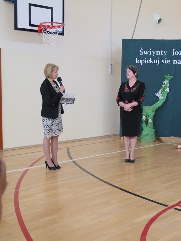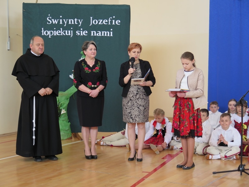 Kolejna część tego podniosłego wydarzenia przebiegała w szkole. Jego otwarcia dokonała pani dyrektor Jadwiga Baran-Stożek witając przybyłych gości: O. Proboszcza-Piotra Głoda, dyrektor S.P. Nr 2 w Lubomierzu-Marię Bożek, przedstawicieli Rady Rodziców sąsiedniej szkoły: Joannę Wojtyczkę i Agnieszkę Młynarczyk, emerytowanych nauczycieli naszej placówki: Marię Bugajską i Annę Malarz, sołtysa wsi- Józefa Gacka oraz bibliotekarkę Władysławę Krzysztof.