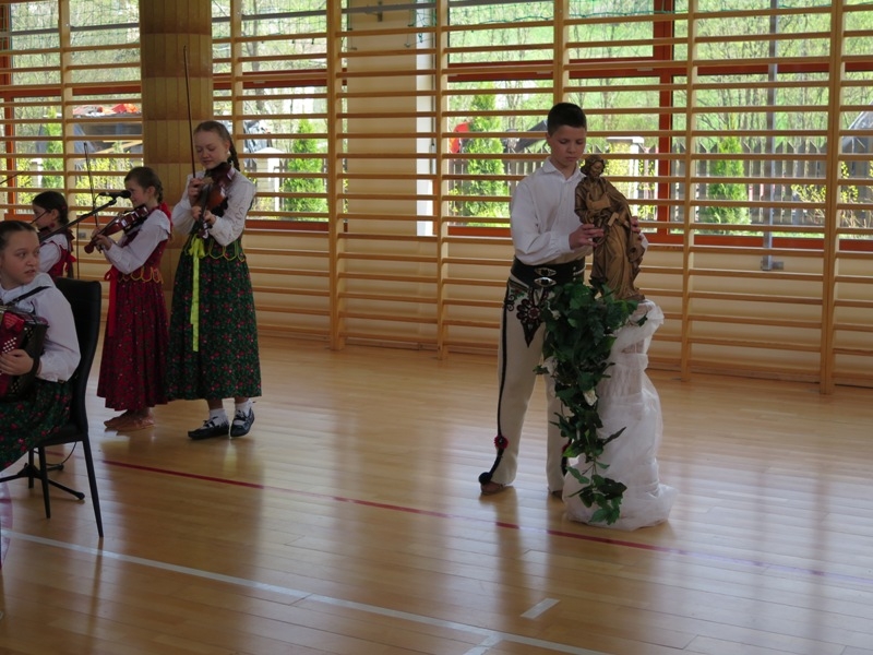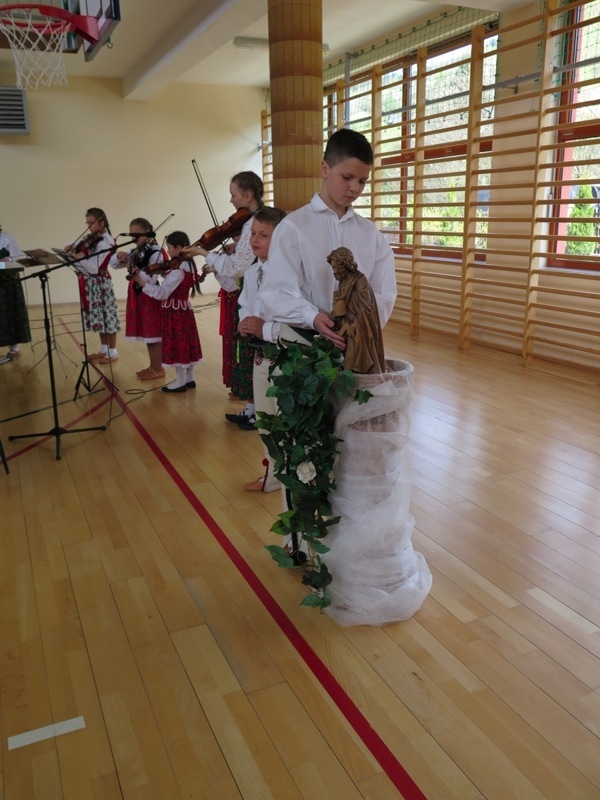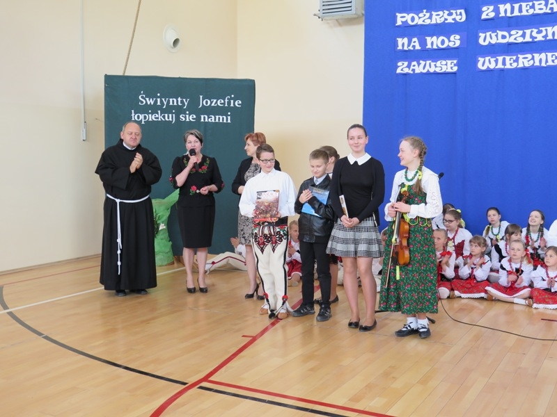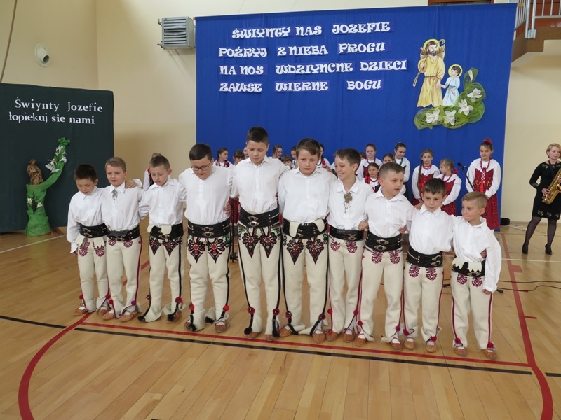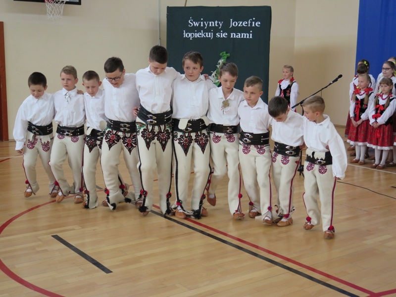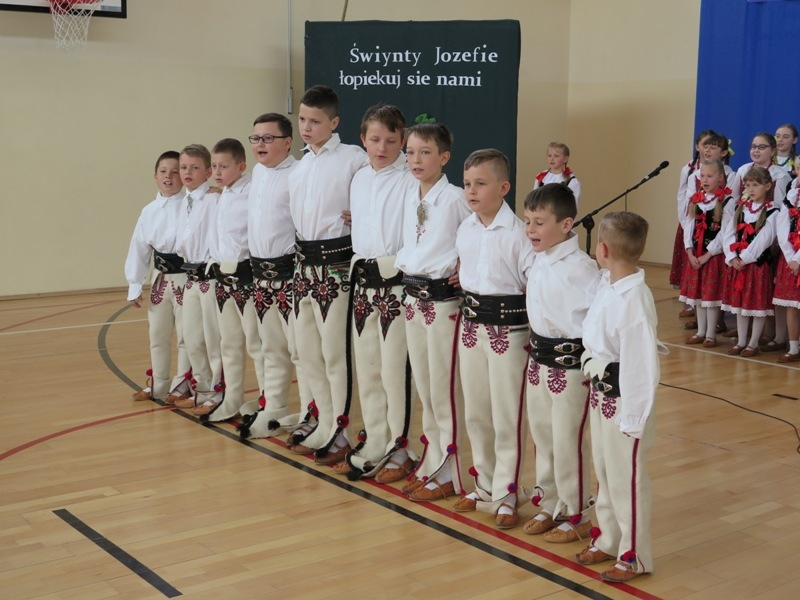 Starsza uczennica wyjaśnia im, że świynty Jozef to patron do naśladowanio, a nie zakcianek spełnianio. Wykonawcy tańczą i śpiewają dla patrona przy akompaniamencie zespołu muzyków (akordeon-Elżbieta Wąchała, Paweł Kowalczyk, Oliwia Krężel, Krzysztof kowalczyk, skrzypce: Aleksandra Wąchała, Magdalena Kapłoniak, Ewa Wojciechowska, Aleksandra Szczepaniak, Martyna Wojciarczyk, basy: Patrycja Zasadni, keyboard: Milena Kuczaj, saksofon: Dorota Wcisło). Kończąc słowami Świynty nas Jozefie poźryj z nieba progu, na nos wdziyncne dzieci zawse wierne Bogu, aktorzy odnoszą figurkę na miejsce.