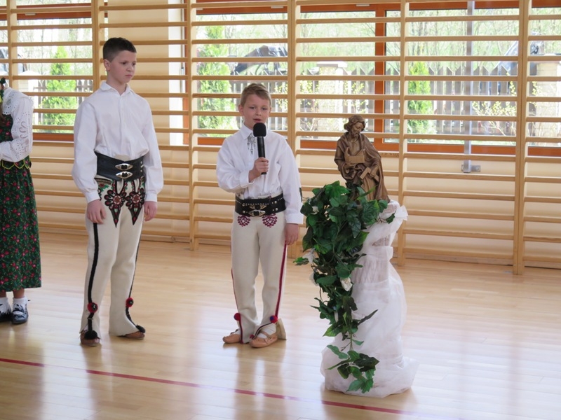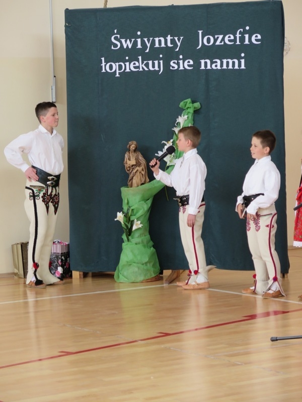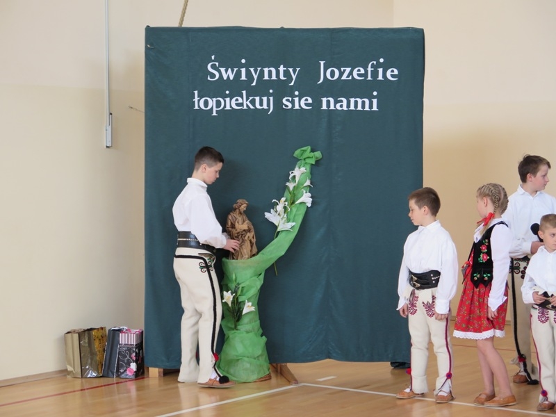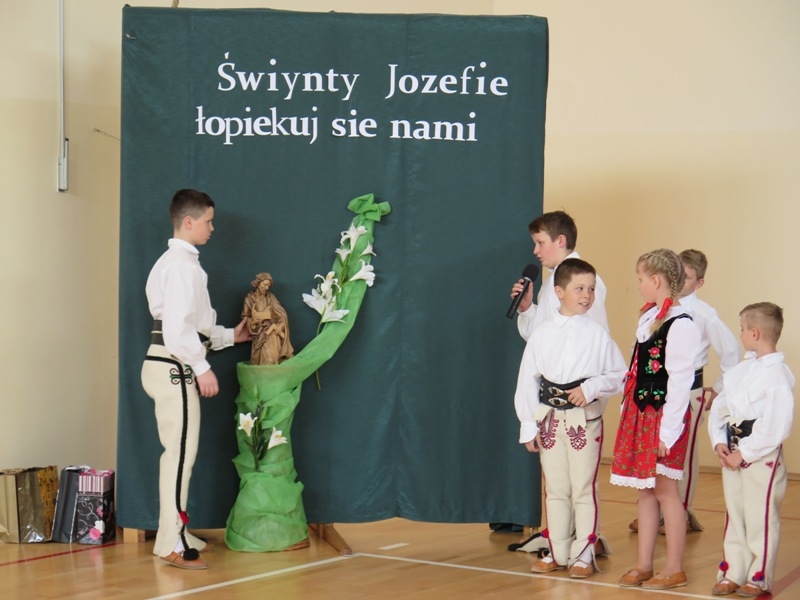 Część artystyczną przygotowali uczniowie zespołu Śwarni Lubomiyrzanie pod kierunkiem Katarzyny Wojtyczki i Doroty Wcisło. Specjalnie ułożony „po nasymu” scenariusz poświęcony był postaci św. Józefa. Aktorzy z wielką pasją i zaangażowaniem zagrali swoje role. Zamienieni w zagórzańskich uczniów wracając ze szkoły kierują swój wzrok na figurę patrona szkoły. Po moralizatorskim dialogu postanawiają ją „pożyczyć”, żeby mu smutno nie było samymy stoć. Ustawiają ją na miejscu honorowym, do którego po chwili podchodzą młodsze dzieci. Klękają, składają ręce i zaczynają się modlić: