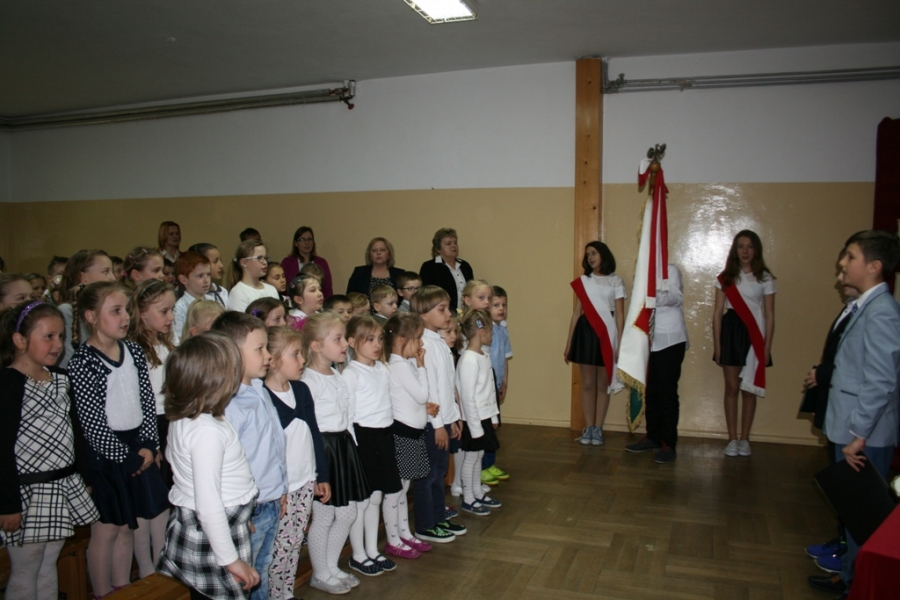 Zwieńczeniem całej uroczystości był występ uczniów klasy „0”, którzy zaprezentowali pieśń przygotowaną na Gminny Przegląd Pieśni Patriotycznych.