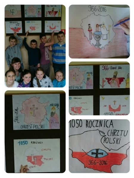 Zadanie tym razem otrzymali uczniowie z klasy V, którzy z wielkim zaangażowaniem podeszli do tematu i tym samym utrwalili wiedzę zdobytą już kilka miesięcy wcześniej na temat Mieszka I , Dynastii Piastów i znaczenia chrztu dla Polski.