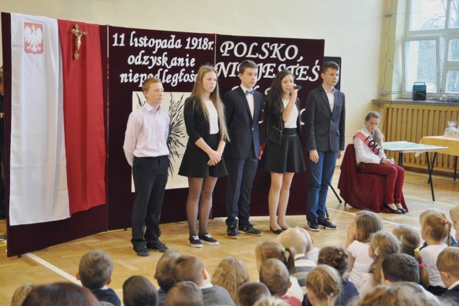 10 listopada br. W Zespole Placówek Oświatowych odbyła się akademia z okazji 98. rocznicy Odzyskania Niepodległości przez Polskę. Uroczystość rozpoczęła się od uroczystego wprowadzenia sztandarów i odśpiewania hymnu narodowego.
