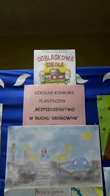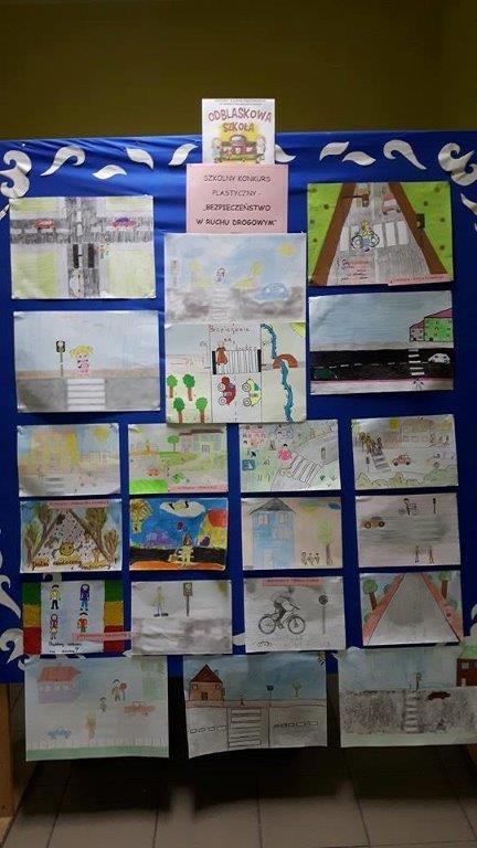 - zorganizowanie Ogólnoszkolnego Konkursu Plastycznego na temat  „Bezpieczeństwo w ruchu drogowym”,