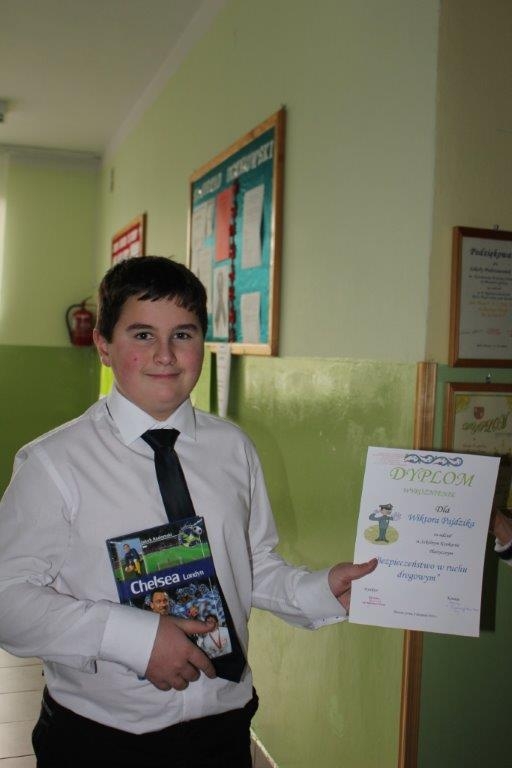 - przeprowadzenie konkursu wiedzy na temat bezpieczeństwa ruchu drogowego dla uczniów klas IV-VI oraz quizu na temat znajomości podstawowych wiadomości z zakresu bezpiecznego poruszania się pieszych po drodze w klasach I-III,