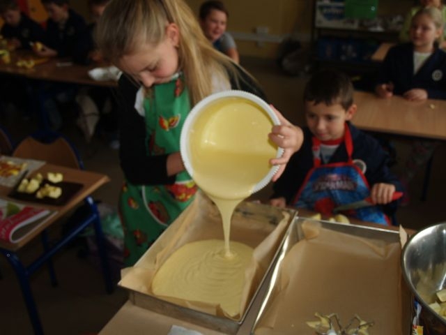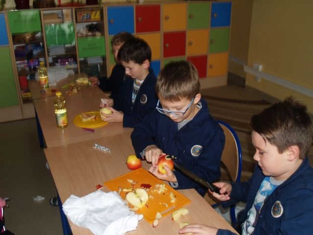 Owoce stały się także pretekstem do podjęcia działań promujących zdrowe odżywianie. Uczniowie przygotowali świeżo wyciskane soki oraz pachnące ciasto z jabłuszkami. Z niecierpliwością czekają na kolejną dostawę, ponieważ mają już przygotowane kolejne przepisy.