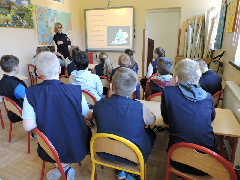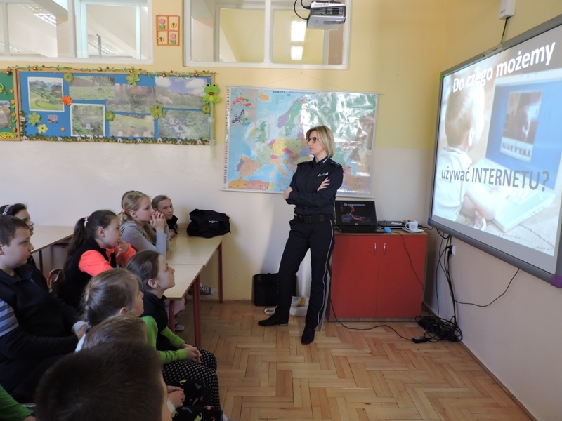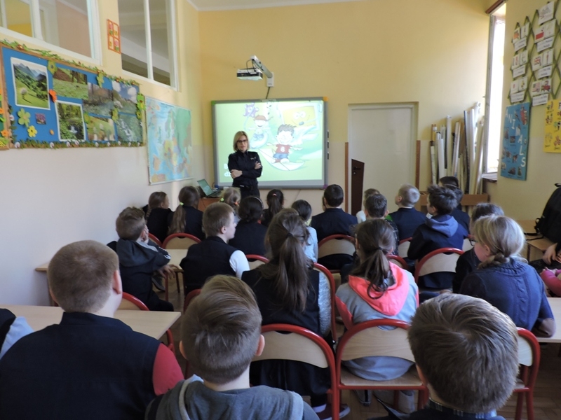 Dnia 28.03.2017r. w ramach zajęć profilaktycznych w Szkole Podstawowej nr 1 w Lubomierzu odbyło się spotkanie uczniów klas 4, 5, 6 z policjantką - młodszym aspirantem Małgorzatą Wojtas.