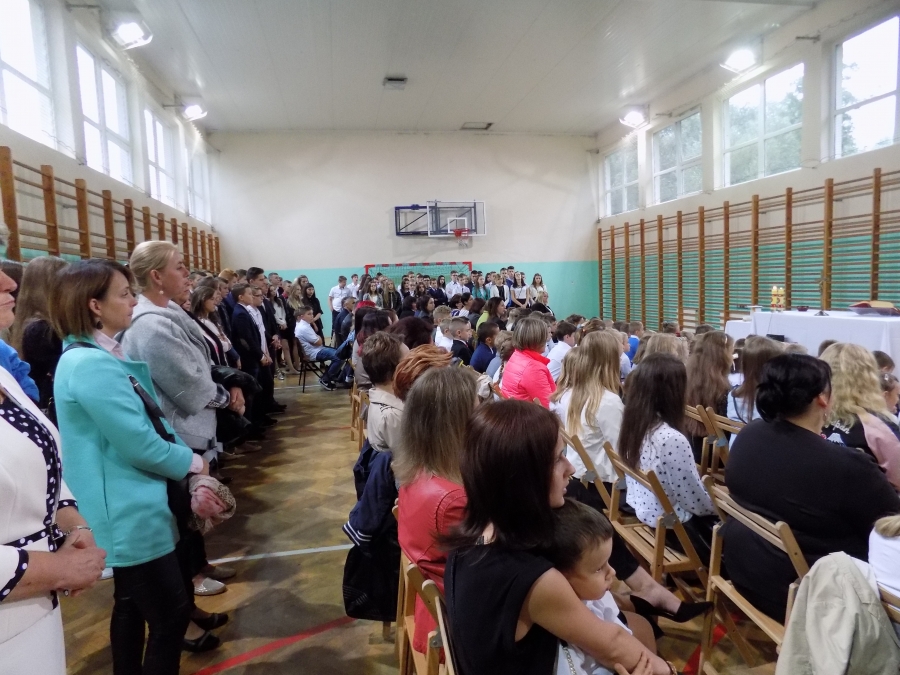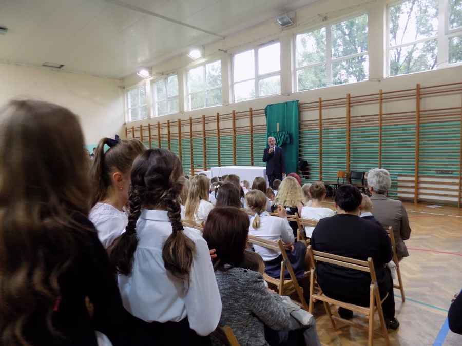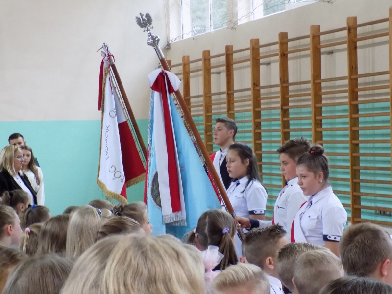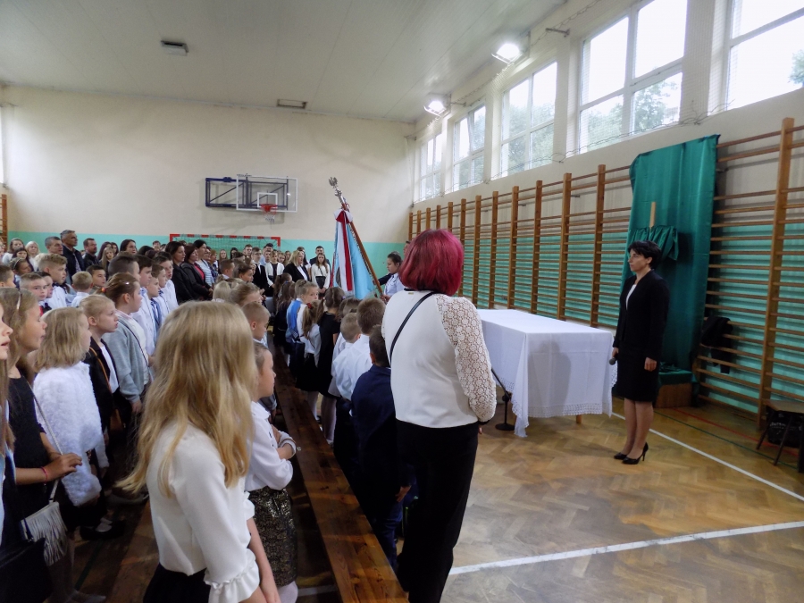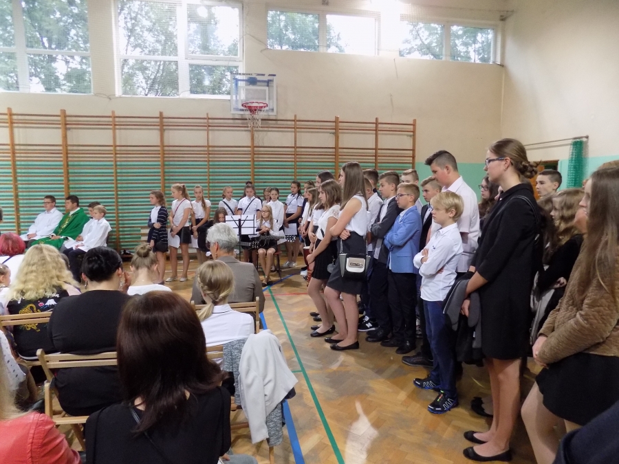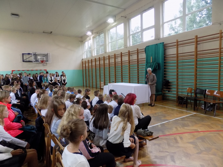 Po Eucharystii kapłan poświęcił tornistry pierwszoklasistów. Na salę wprowadzono sztandary szkół i odśpiewano hymn państwowy. Dyrektor, Marta Skowronek, powitała wszystkich zgromadzonych: nauczycieli, pracowników oraz rodziców uczniów tej placówki i złożyła wszystkim życzenia spokojnej i efektywnej pracy w nowym roku. Mazur Jarosław – wicedyrektor szkoły – w swoim przemówieniu nawiązał do 78. rocznicy wybuchu II Wojny Światowej.