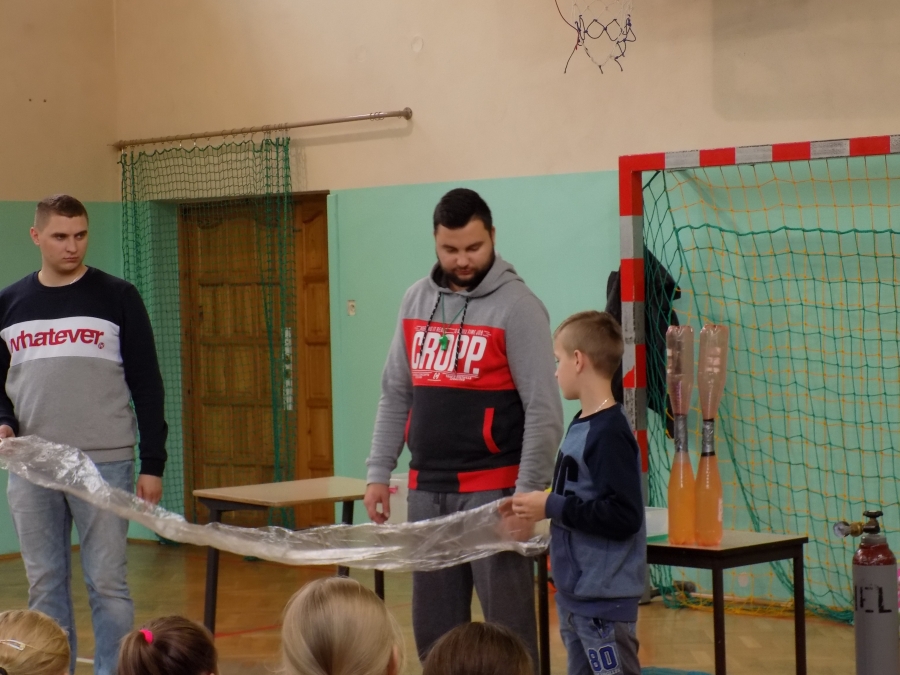 Uczniowie z zainteresowaniem obserwowali prezentowane doświadczenia, między innymi przy użyciu gazów: helu, wodoru, tlenku węgla (IV), propanu, butanu. Każdy z uczestników mógł nie tylko oglądać eksperymenty, ale również wziąć w nich udział.