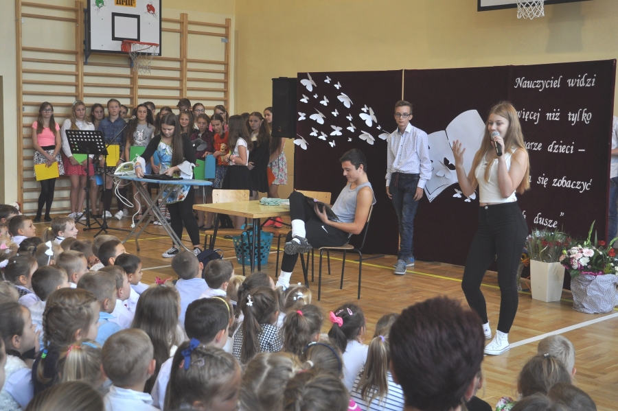 W części artystycznej uczniowie śpiewem, wierszem i humorystyczną inscenizacją wyrazili swoje podziękowanie i słowa uznania dla trudnej pracy pedagogów. Na uroczystości byli obecni przedstawiciele Rady Rodziców, którzy życzyli wszystkim pracownikom szkoły dużo cierpliwości i wielu sukcesów.