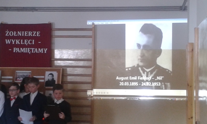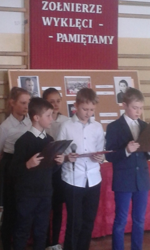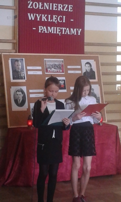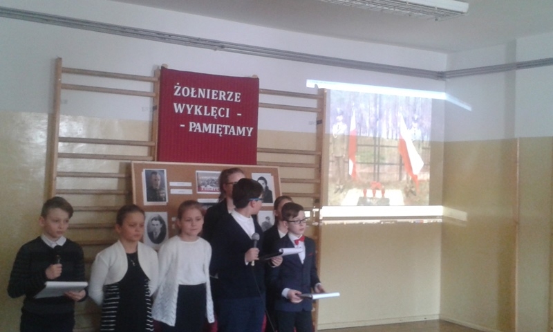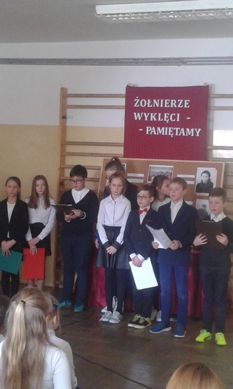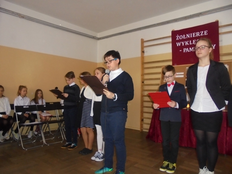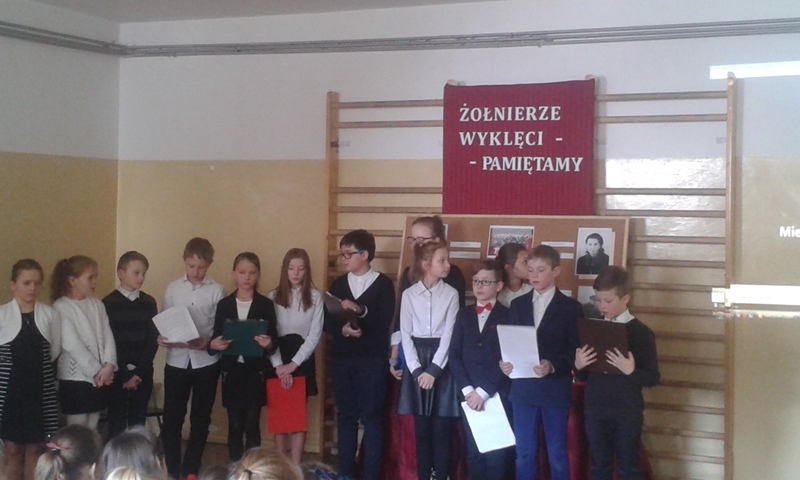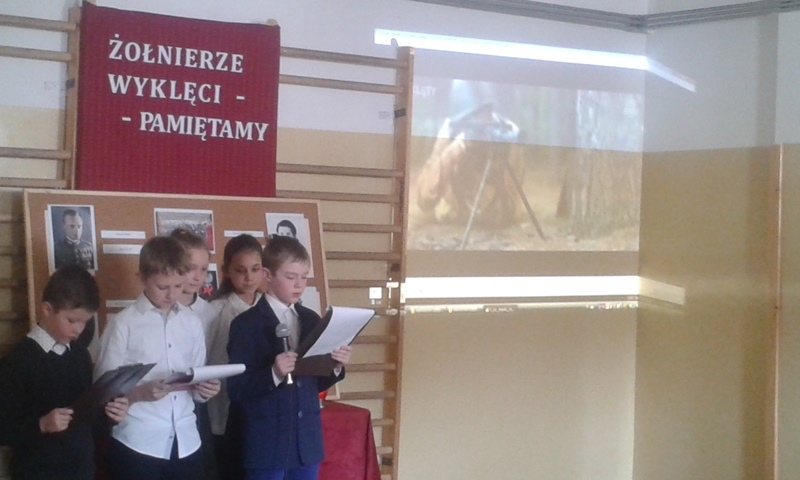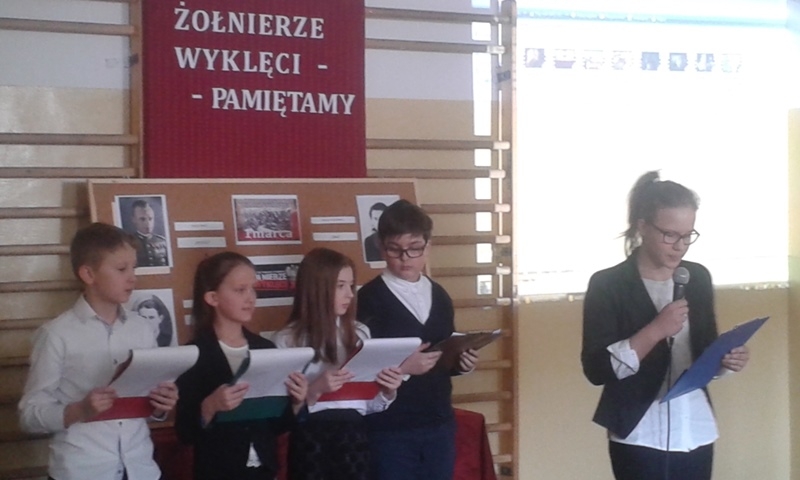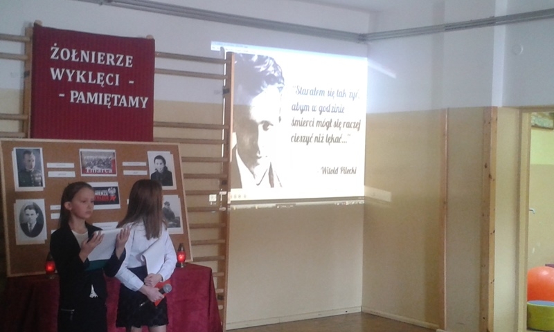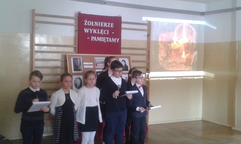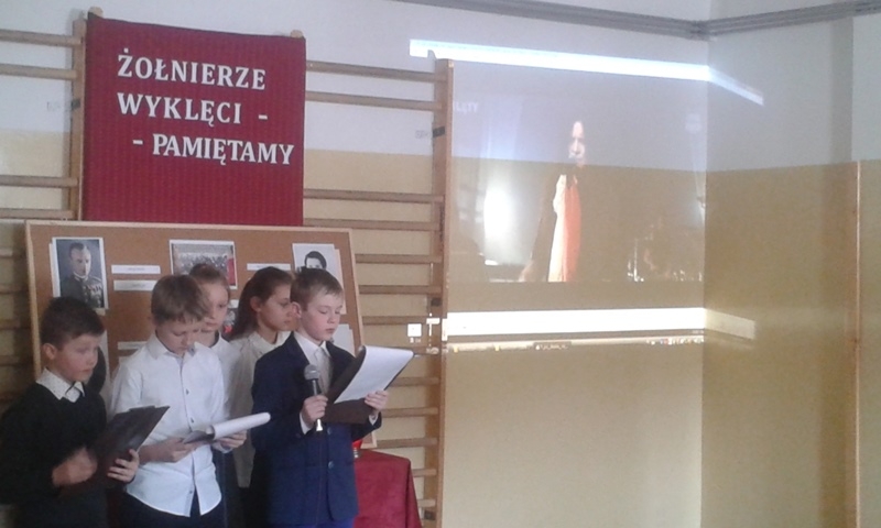 Samorząd Uczniowski przygotował bowiem akademię z okazji „Narodowego Dnia Pamięci Żołnierzy Wyklętych”. Wiersze i informacje historyczne przeplatano pieśniami żołnierskimi, teledyskami i filmami z czasów walki „Żołnierzy Niezłomnych” o niepodległość Polski. Wszyscy zgromadzeni w ciszy i z uwagą słuchali przygotowanej prezentacji. Były także łzy wzruszenia.