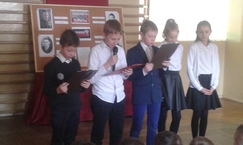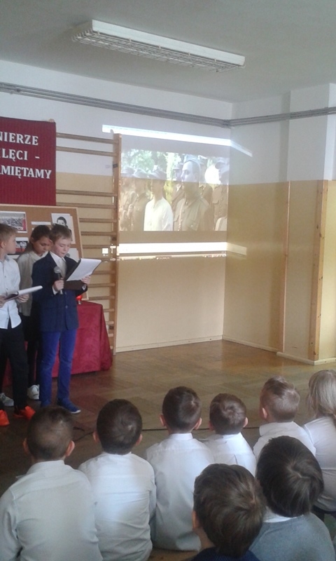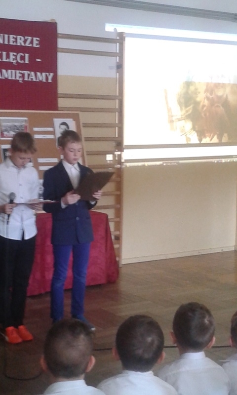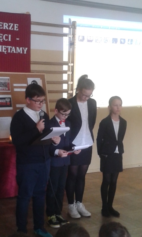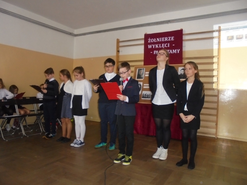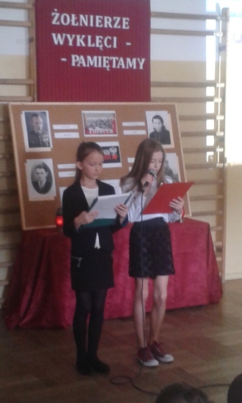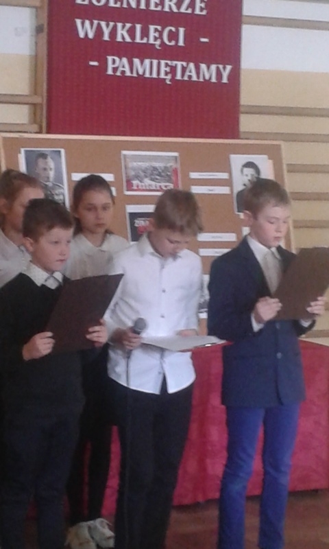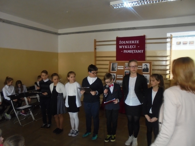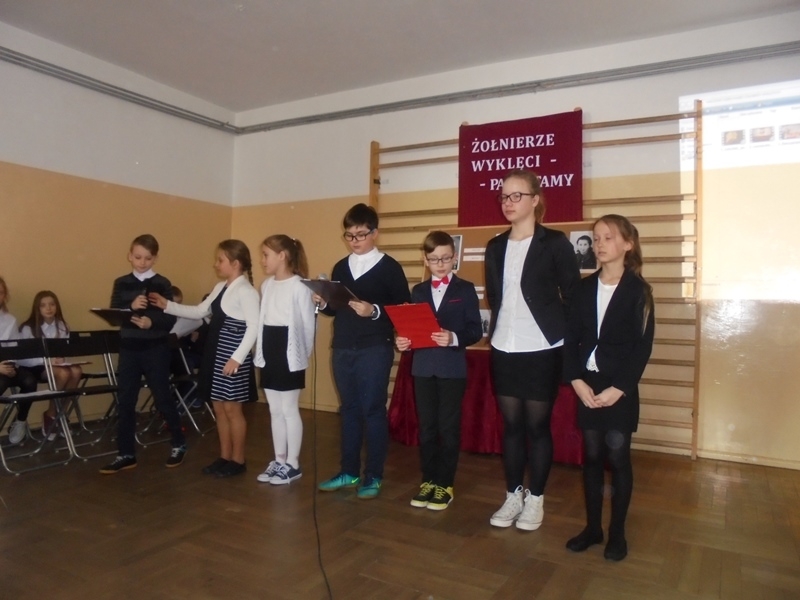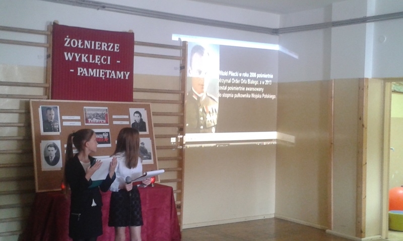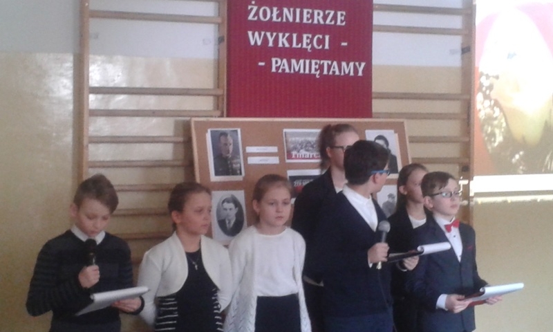 Samorząd Uczniowski przygotował bowiem akademię z okazji „Narodowego Dnia Pamięci Żołnierzy Wyklętych”. Wiersze i informacje historyczne przeplatano pieśniami żołnierskimi, teledyskami i filmami z czasów walki „Żołnierzy Niezłomnych” o niepodległość Polski. Wszyscy zgromadzeni w ciszy i z uwagą słuchali przygotowanej prezentacji. Były także łzy wzruszenia.