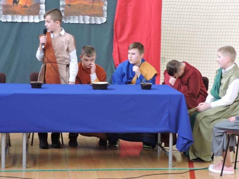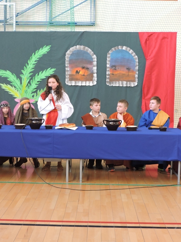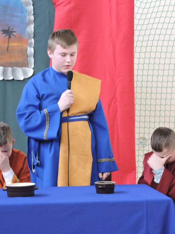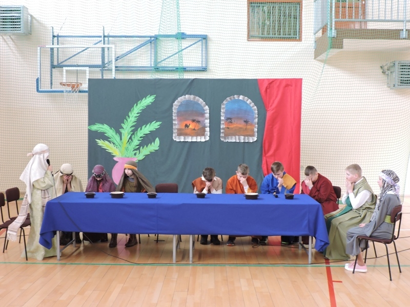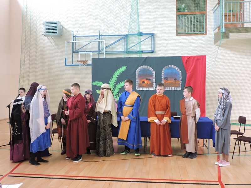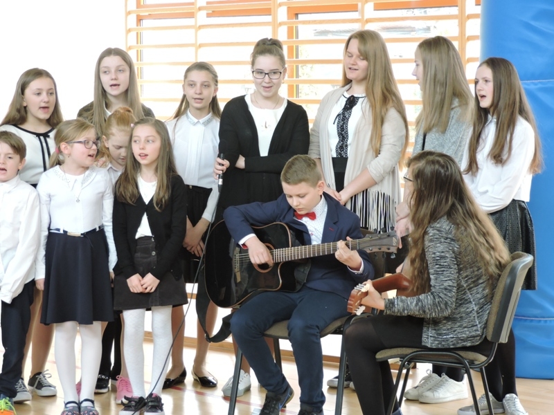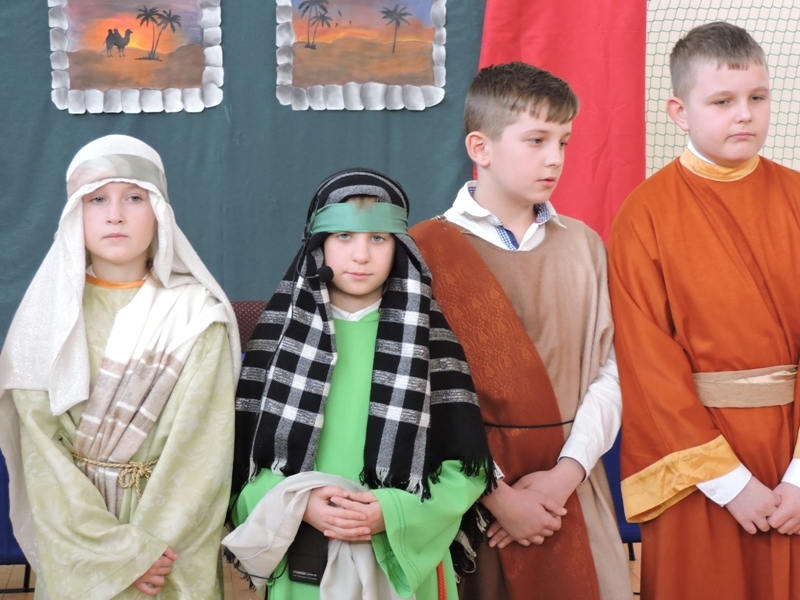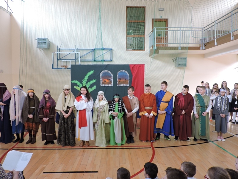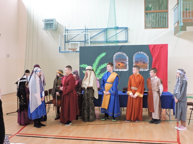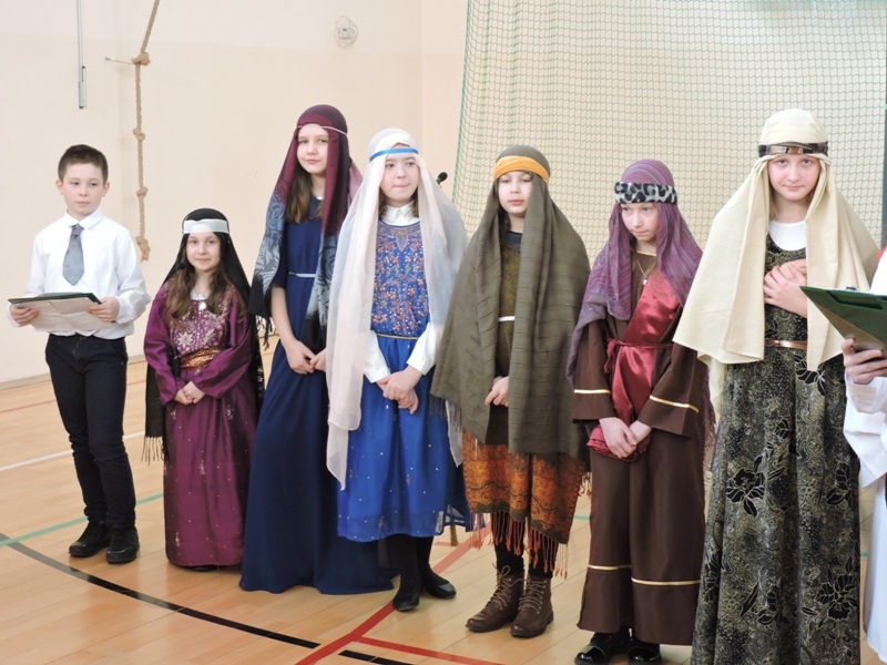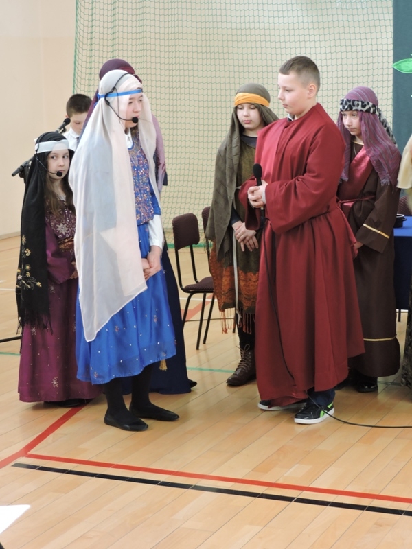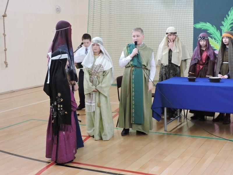 Program artystyczny - scenkę pt: Zmartwychwstanie – przygotowali i przedstawili uczniowie klasy piątej, a dzieci ze scholi parafialnej śpiewały i grały pieśni wielkanocne. Inscenizację obejrzeli: dyrektor, nauczyciele, pracownicy, rodzice i uczniowie lubomierskiej jedynki.