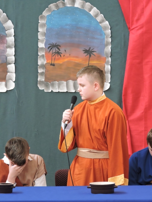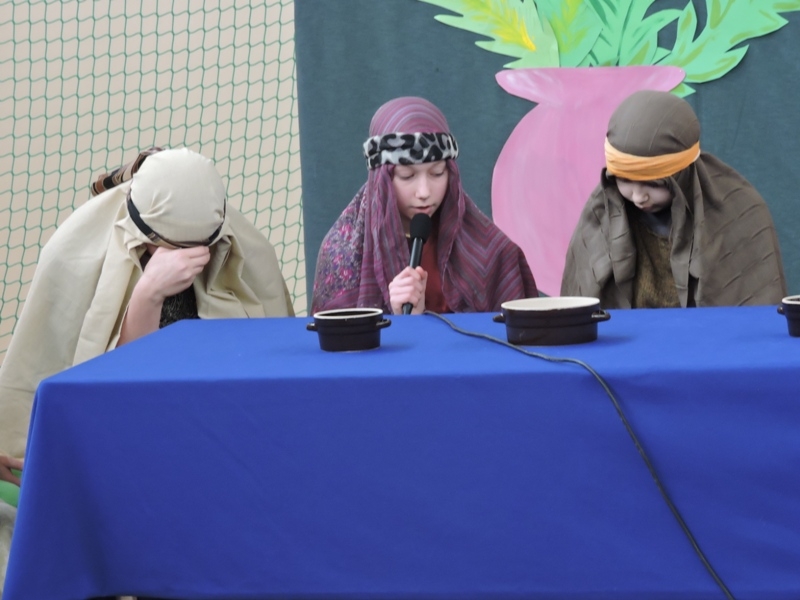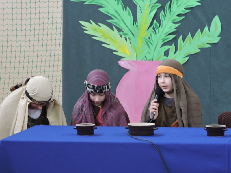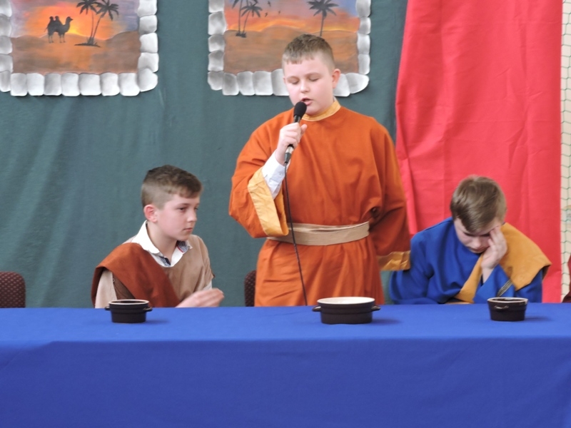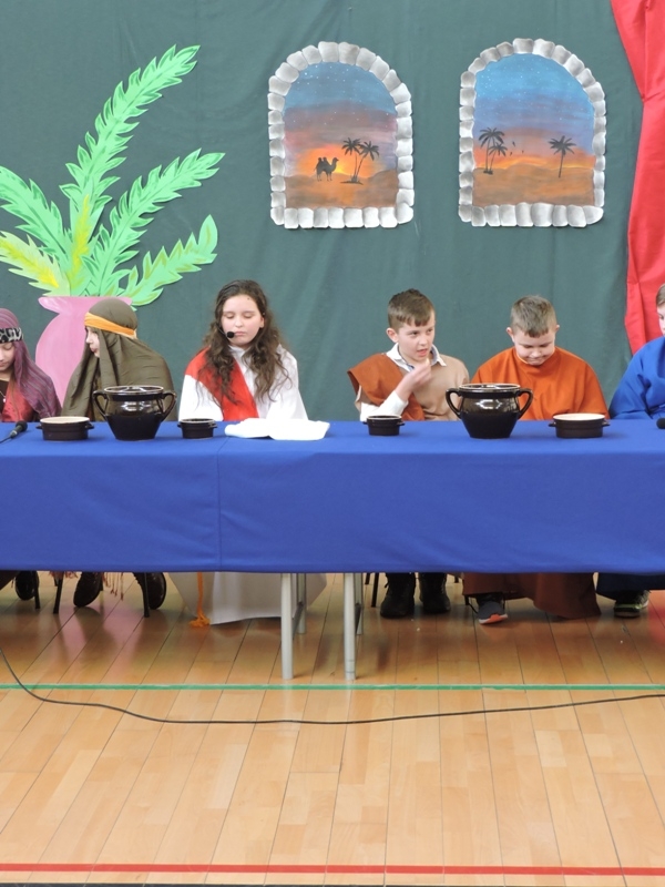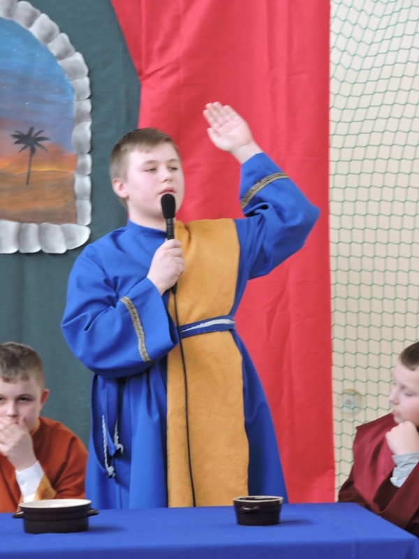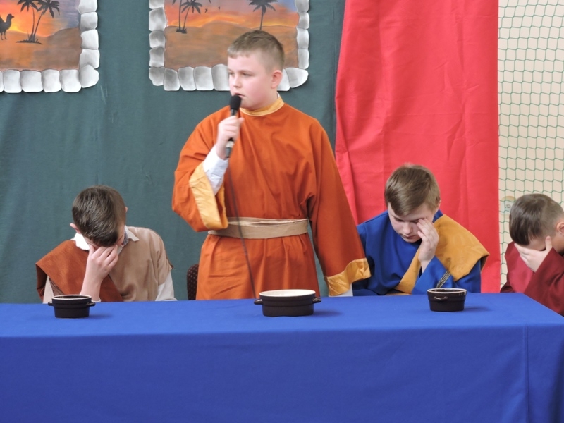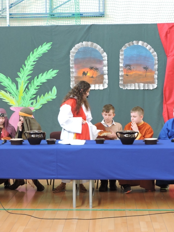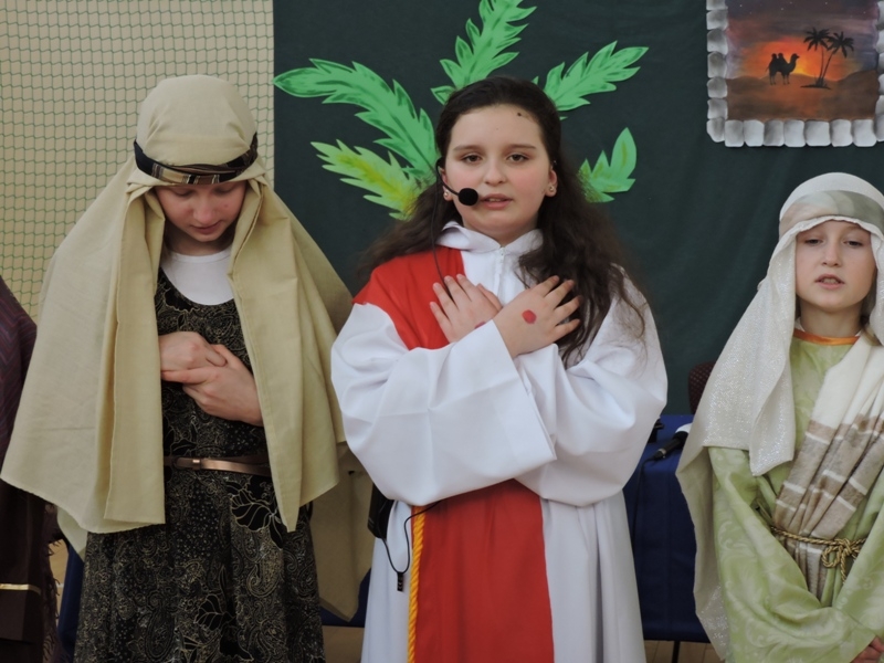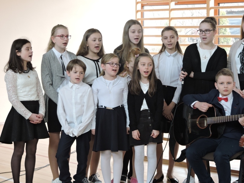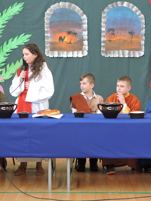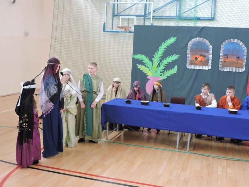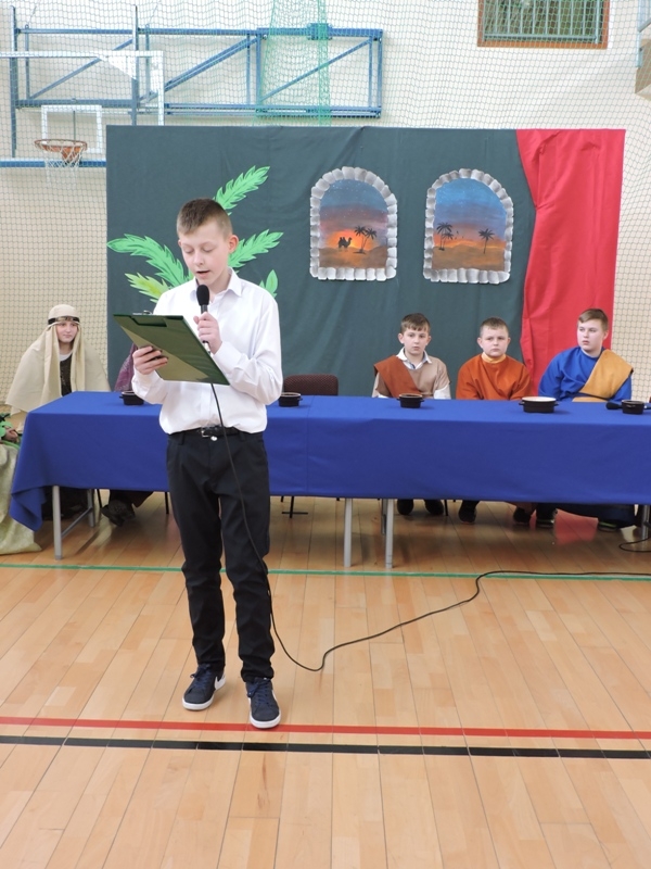Program artystyczny - scenkę pt: Zmartwychwstanie – przygotowali i przedstawili uczniowie klasy piątej, a dzieci ze scholi parafialnej śpiewały i grały pieśni wielkanocne. Inscenizację obejrzeli: dyrektor, nauczyciele, pracownicy, rodzice i uczniowie lubomierskiej jedynki.