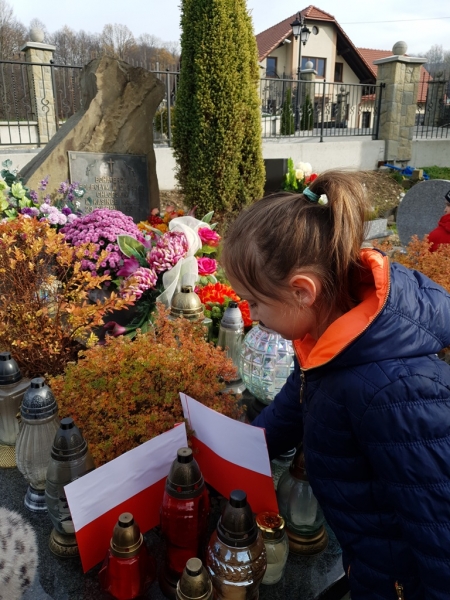 Kilka dni wcześniej wszystkie klasy w ramach zajęć z wychowawcą prowadziły dyskusje, a przy pomocy książek, encyklopedii i wiadomości znalezionych w sieci dowiadywały się, jak to z tą naszą kochaną Polską było. Uwiecznieniem tych szkolnych działań było wspólne wykonanie gazetki klasowej oraz czynny udział w apelu poświęconym 101. rocznicy odzyskania przez Polskę Niepodległości. Uroczystość rozpoczęto odśpiewaniem Hymnu Państwowego, który wykonany został z uczniami wszystkich szkół w Polsce o godz. 11.11. Tuż po akademii chwilą ciszy i zapaleniem zniczy pod pomnikiem niepodległościowym uczczono pamięć poległych w obronie naszej Ojczyzny. Szczególnym punktem uroczystości był wyjazd klas I i II wraz z wychowawcą – Agatą Ziębą i Moniką Piwko-Bieniek na cmentarz parafialny, gdzie przy grobie lokalnych bohaterów zapalono znicze, odmówiono wspólną modlitwę i wbito nieśmiało powiewające na  wietrze biało - czerwone chorągiewki.