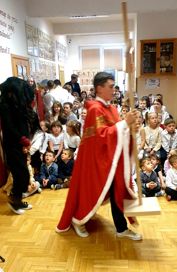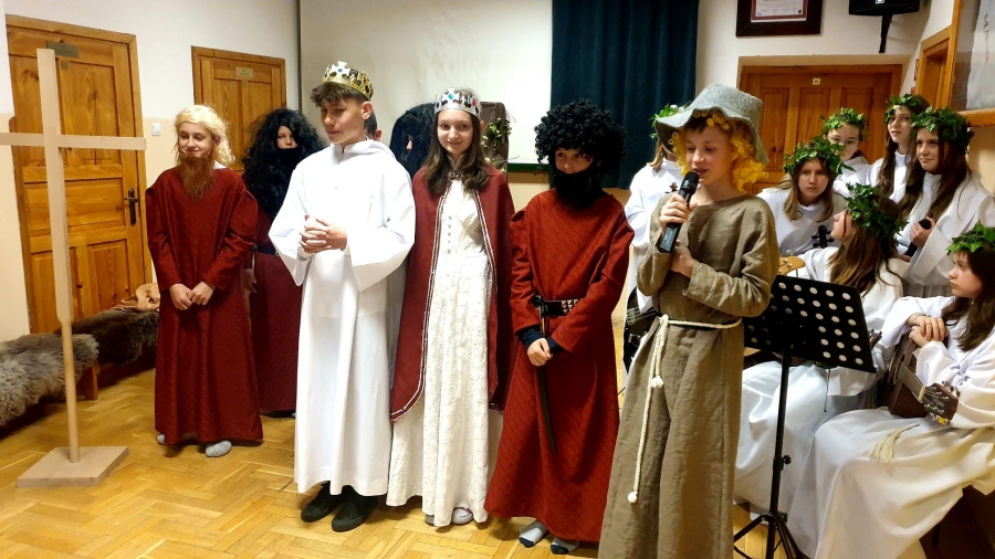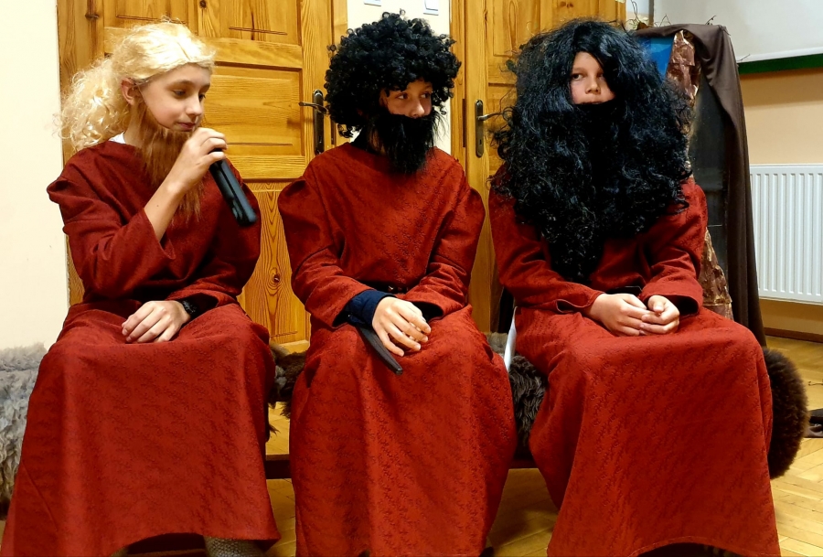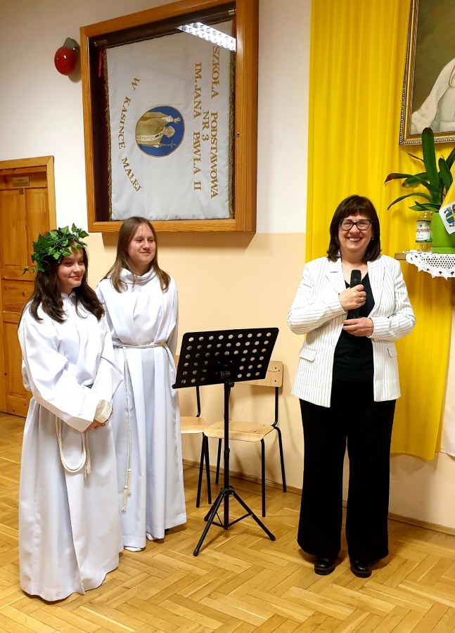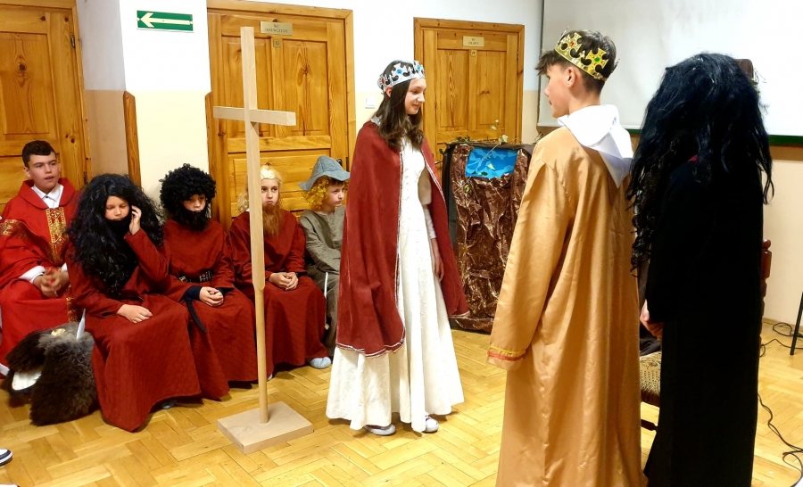 W Szkole Podstawowej nr 3 w Kasince Małej po raz kolejny odbyły się uroczyste obchody tego ważnego wydarzenia, które na trwałe ,,odmieniło oblicze ziemi, polskiej ziemi…”. W tym roku minęła 1058. rocznica chrztu Mieszka I. Uczniowie klas V-VIII pod kierunkiem nauczycielki, Grażyny Kowalczyk, przygotowali inscenizację historyczną, która przeniosła wszystkich do X wieku i ukazała okoliczności przyjęcia chrztu, a przede wszystkim jego znaczenie dla rozwoju polskiej państwowości. Doskonałym uzupełnieniem treści przedstawienia stała się oprawa muzyczna - pieśni nawiązujące tematycznie do chrztu. Wykonały ją uzdolnione uczennice klas VI-VIII. Mamy nadzieję, że była to ,,żywa” lekcja historii, która zostanie zapamiętana przez dzieci i młodzież. ,,Ta historia to nasze życie, ta historia to nasza wiara, ta historia to nasze korzenie…” – podsumowują nauczyciele kasinczańskiej trójki.