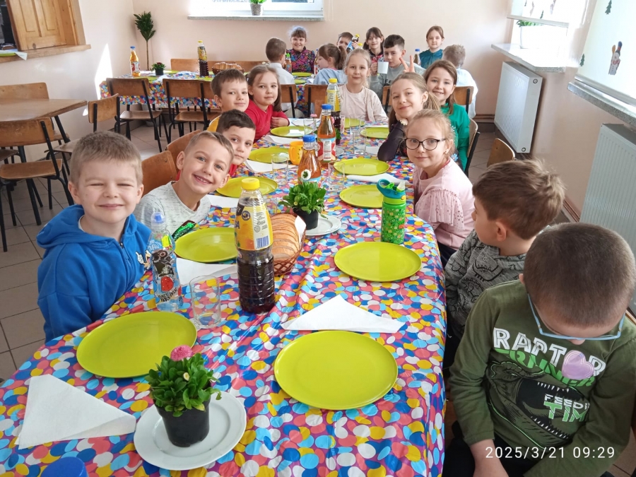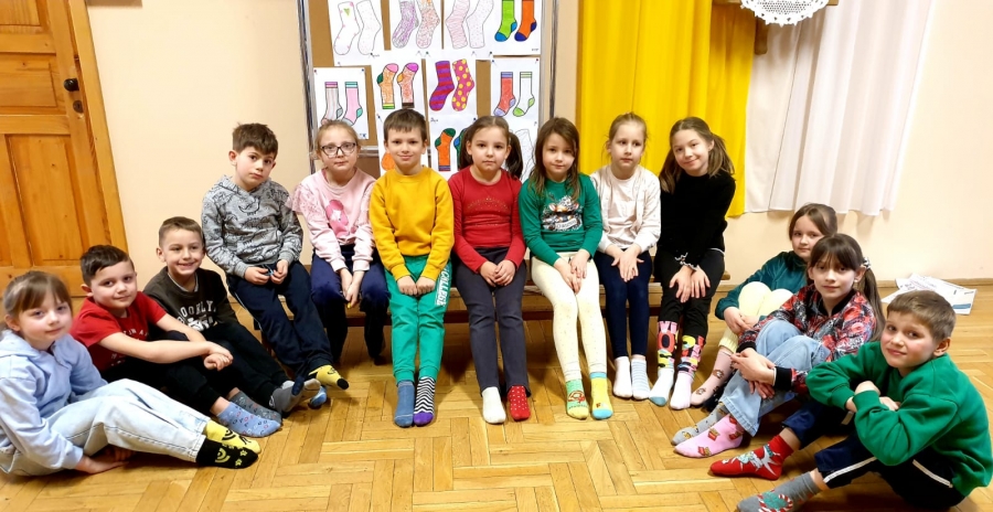 W tym dniu zorganizowano akcję pt. „Dzień Kolorowej Skarpetki”, która miała na celu zwiększenie świadomości społecznej na temat Zespołu Downa, propagowanie praw i dobra ludzi z tą wadą genetyczną i integrację z nimi. Aby podkreślić charakter tego dnia, uczniowie przyszli w kolorowych skarpetkach nie do pary i kolorowych ubraniach, co miało na celu symbolizować to święto. Najmłodsi podopieczni bawili się na świeżym powietrzu, a po powrocie wykonali Panią Wiosnę. Wszyscy wykazali się pomysłowością i talentem plastycznym. Klasy I-III przygotowały kanapki z zieleninką m.in. ogórkiem, rukolą i dodatkami serowymi, które ze smakiem kosztowali na jadalni. Natomiast starsi uczniowie ujawnili swoje zdolności cukiernicze, wypiekając gofry i przystrajając je słodkościami.